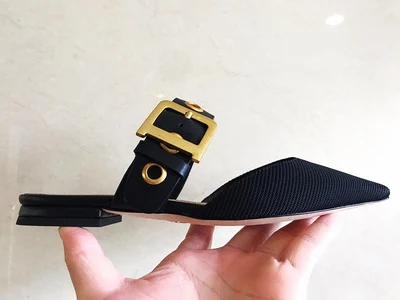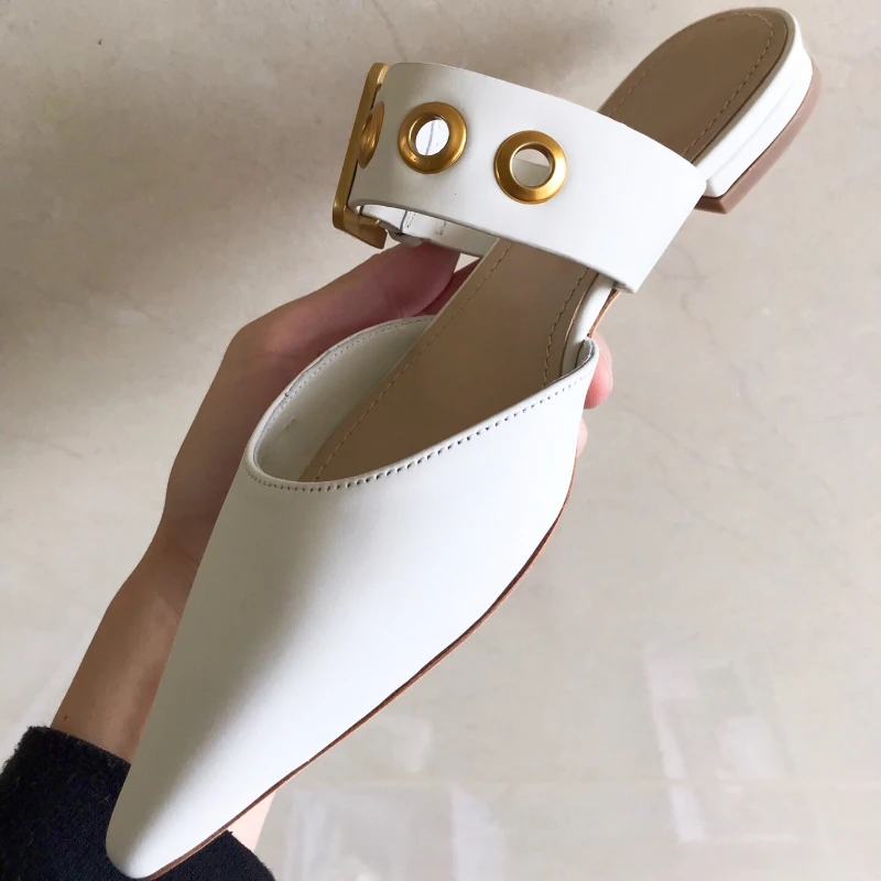 Pointed Toe Flat Mules Popular New Semi-Slipper Outer Wear Metal D-Shape Button Flat Shoes
