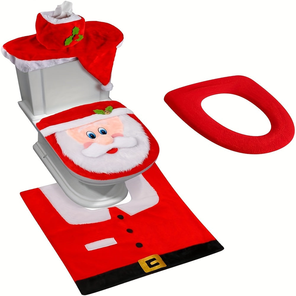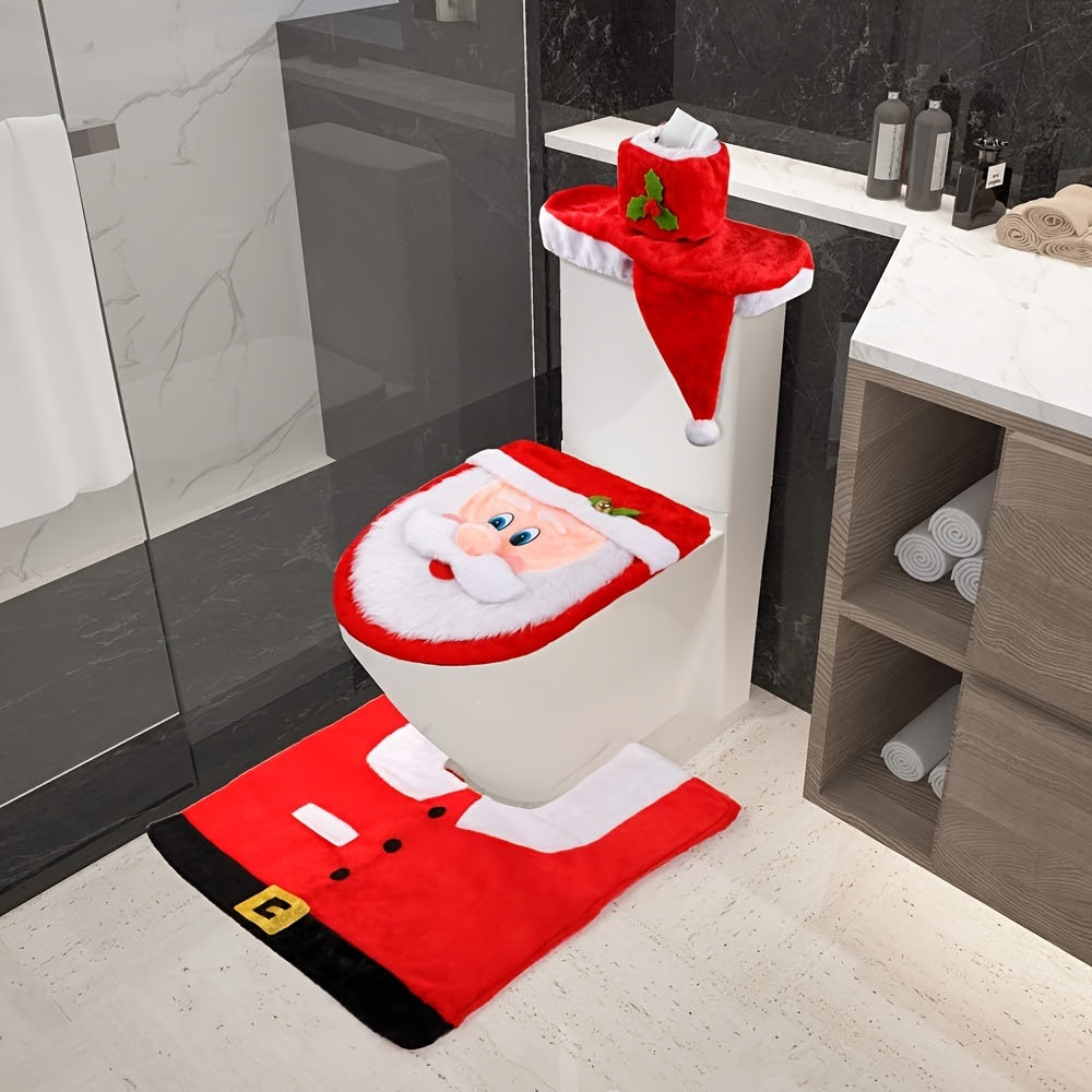 D-FantiX 3D Nose Santa Toilet Seat Cover And Rug Set Funny Christmas Decorations Bathroom Set Of 5
