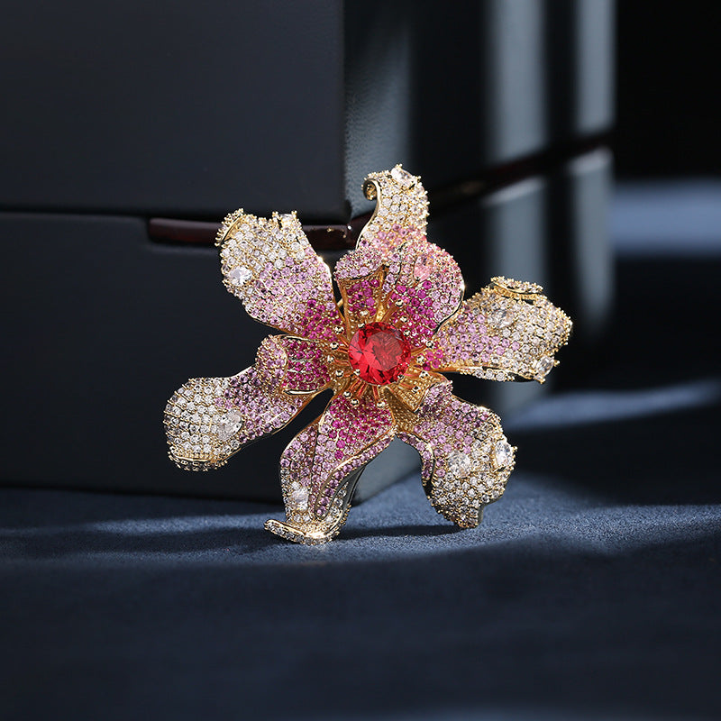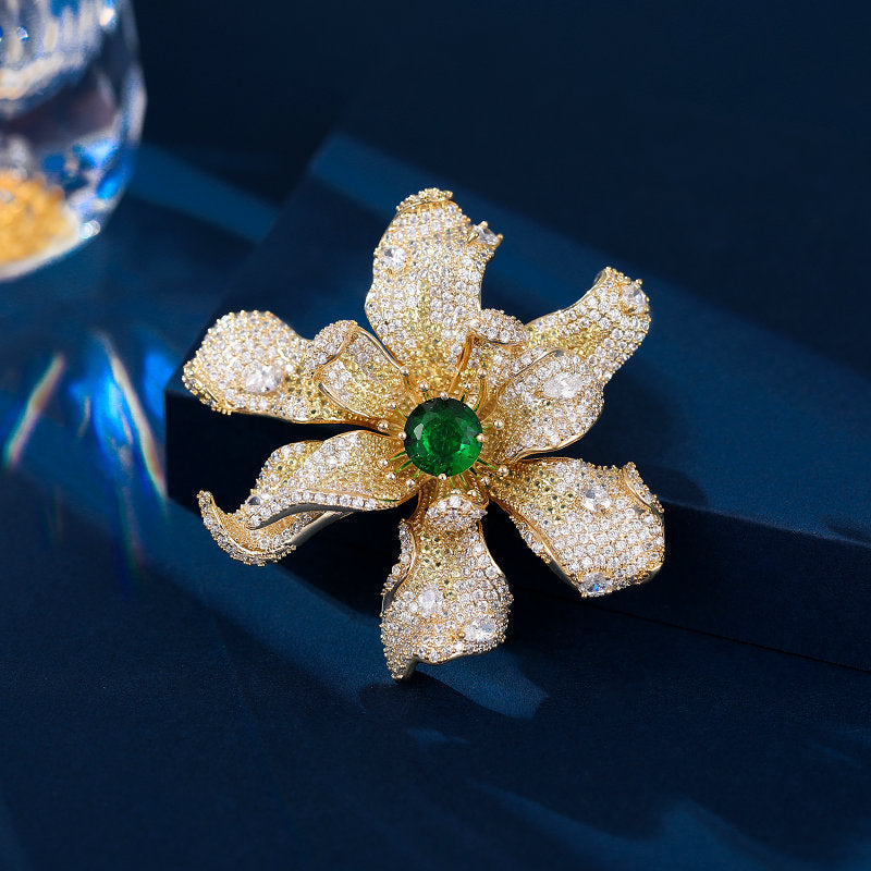 2025 Three-dimensional flower zircon brooch heavy industry high-end luxury fixed clothes pin temperament coat dress coat accessories