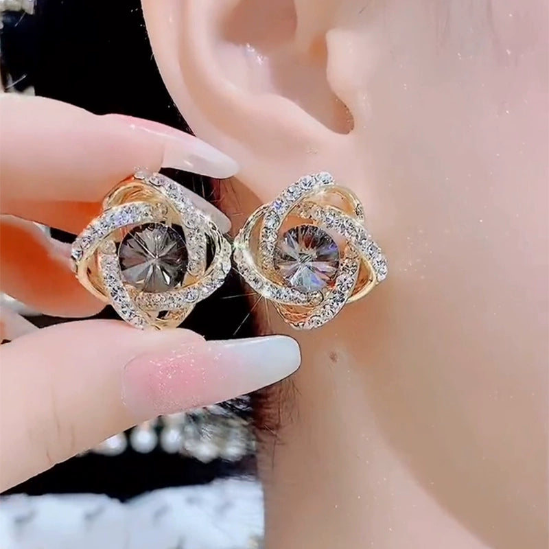 Gray zircon winding earrings, feminine temperament, light luxury, high-end silver needle earrings, popular Popular style ear jewelry in