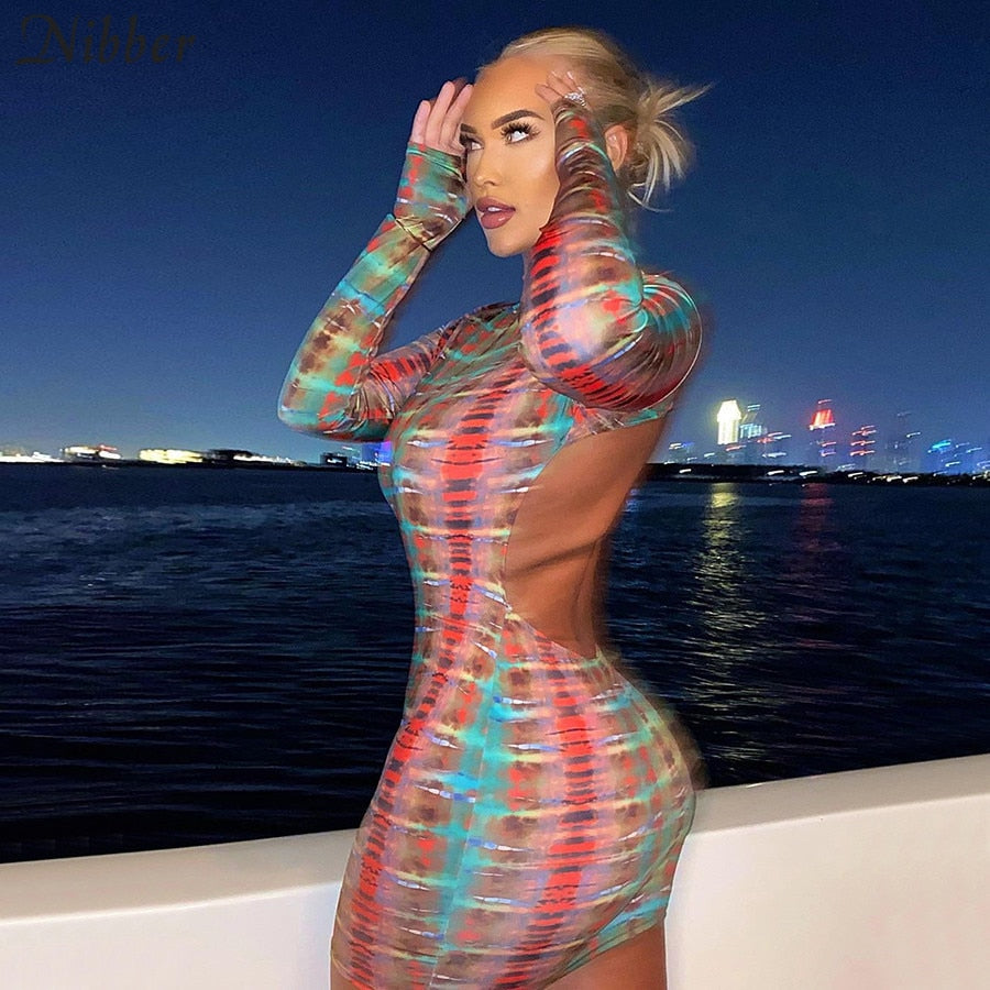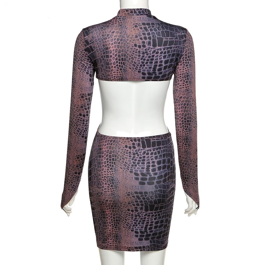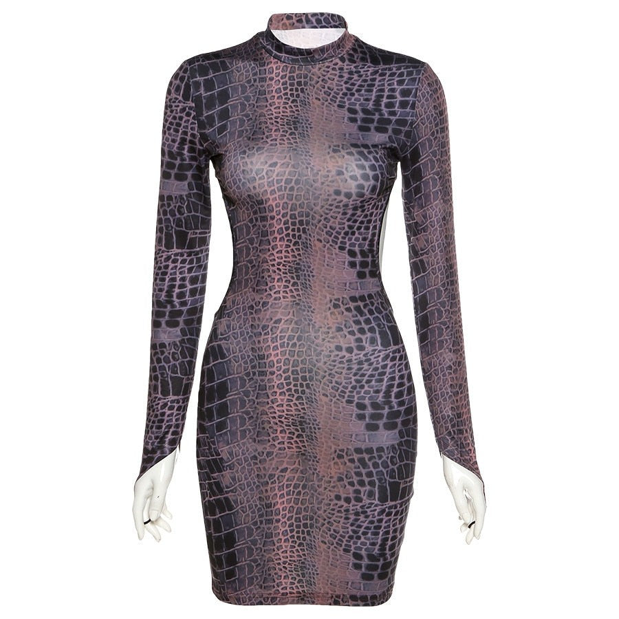 hulianfu Sexy Backless Serpentine Print Mini Bodycon Dress Women Fall Chic Package Hip Streetwear Female Casual Party Club Clothes