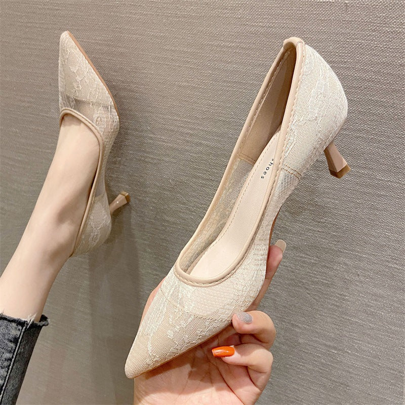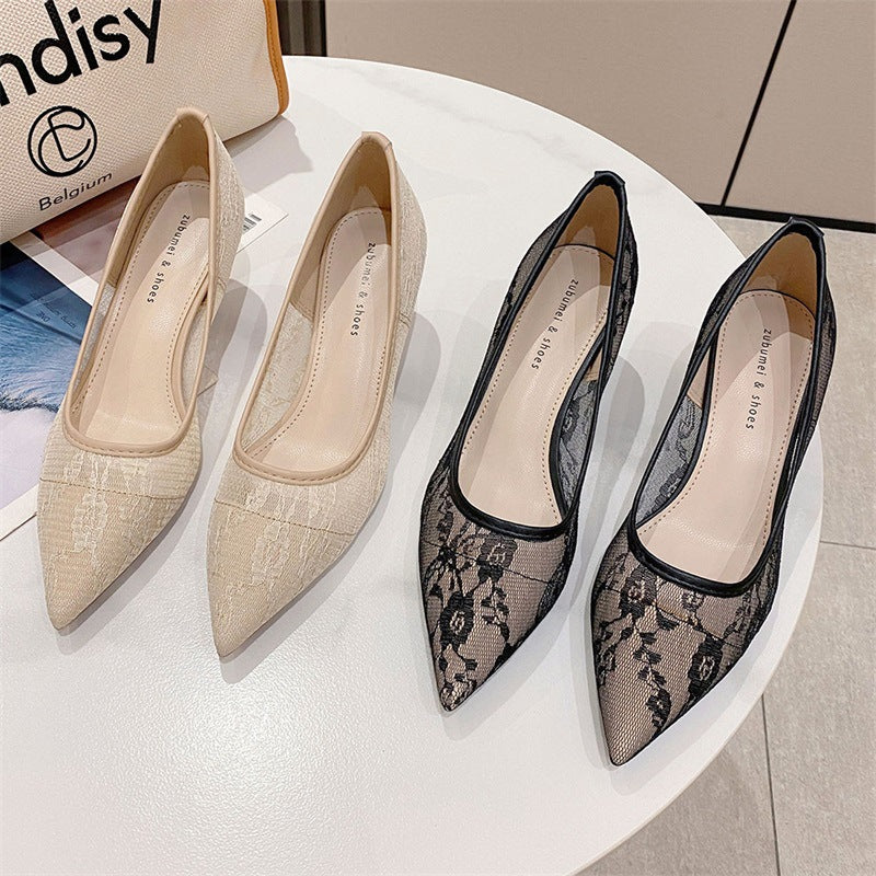 2025 238-6 Sexy temperament pointed toe stiletto single shoes women's fashion mesh banquet women's shoes lace high heels