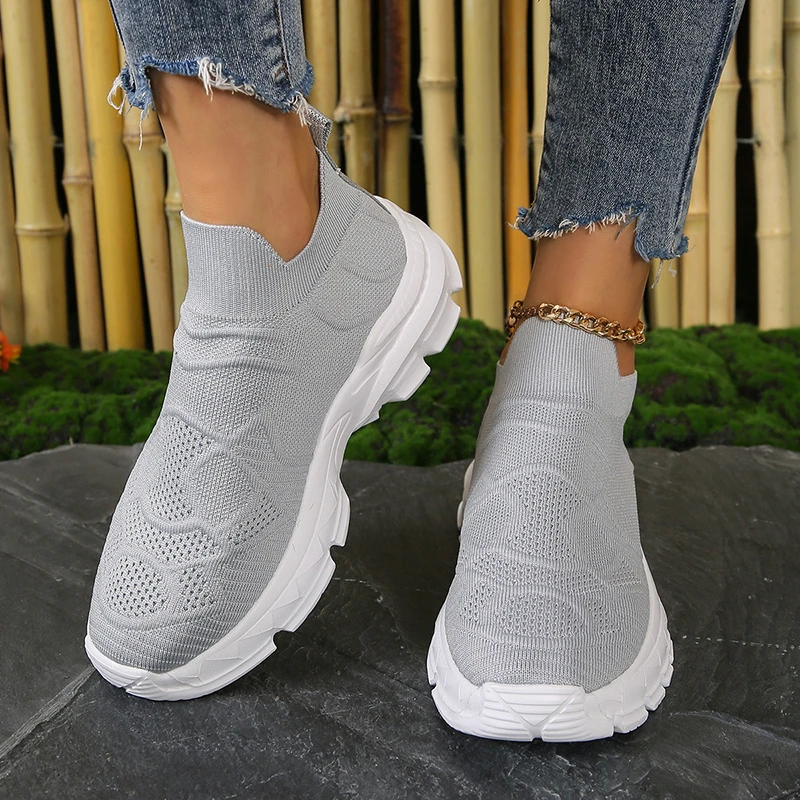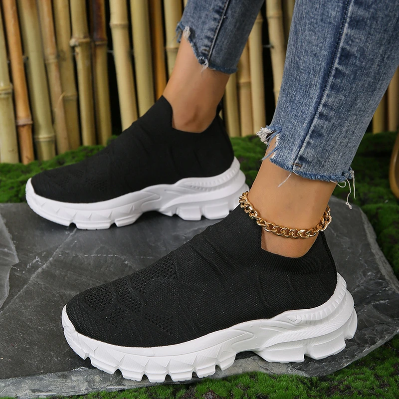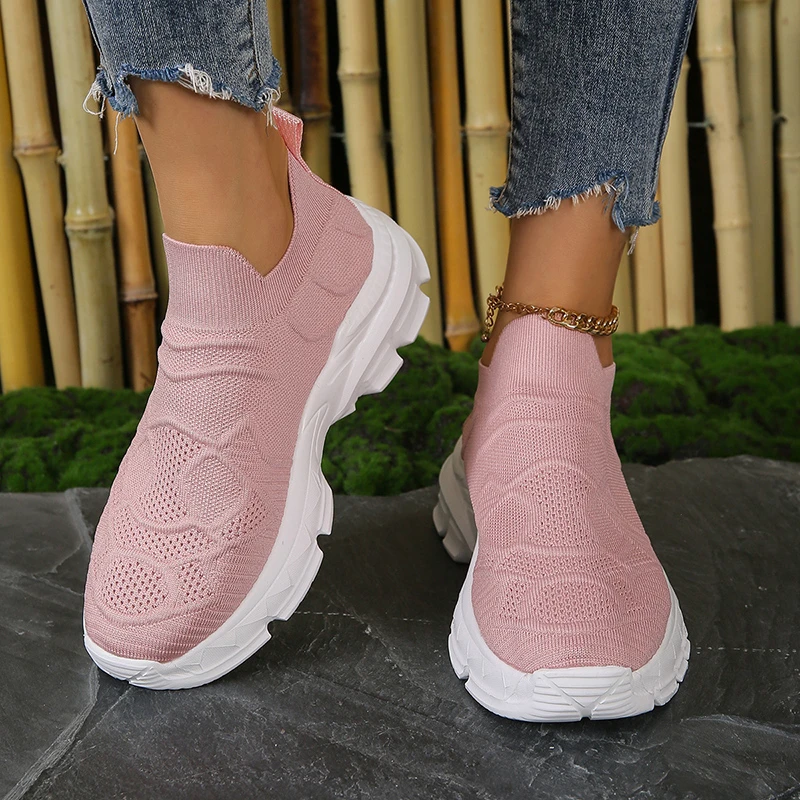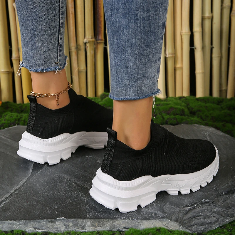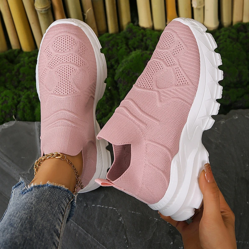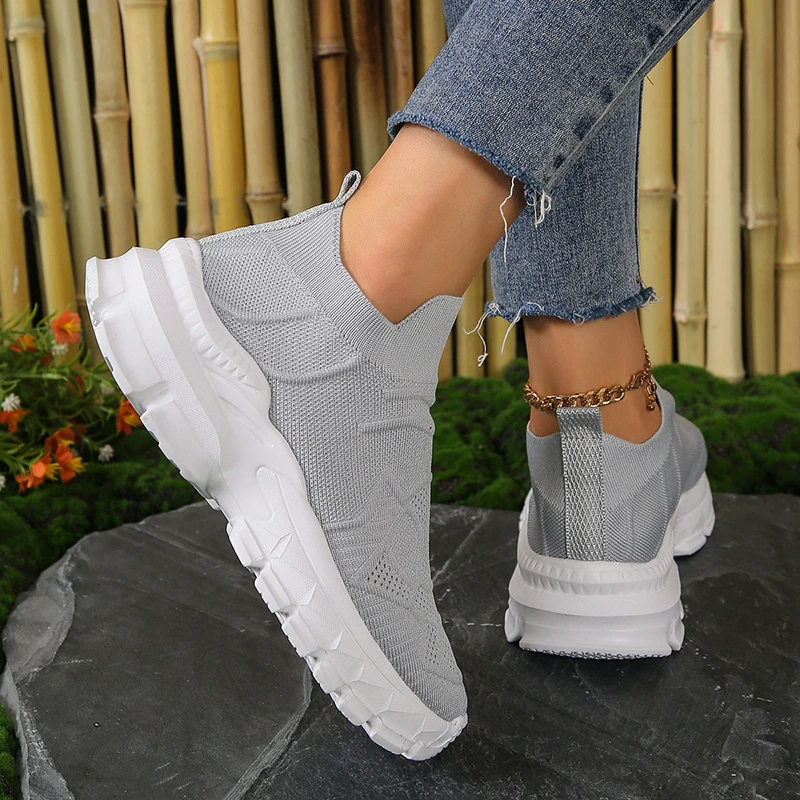 Breathable Mesh Thick Bottom Sneakers Women Autumn Platform Knitted Casual Shoes Woman Plus Size 42 Anti Slip Sock Shoes