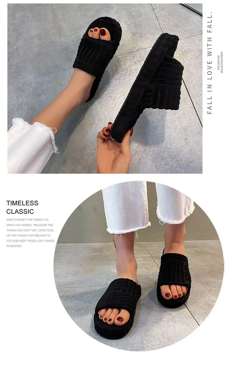 hulianfu Fashion Women's Slippers New Flat Towel Slippers Thick Soles Wear Fashion Hight Street Shoes 35-43 Cotton Slides