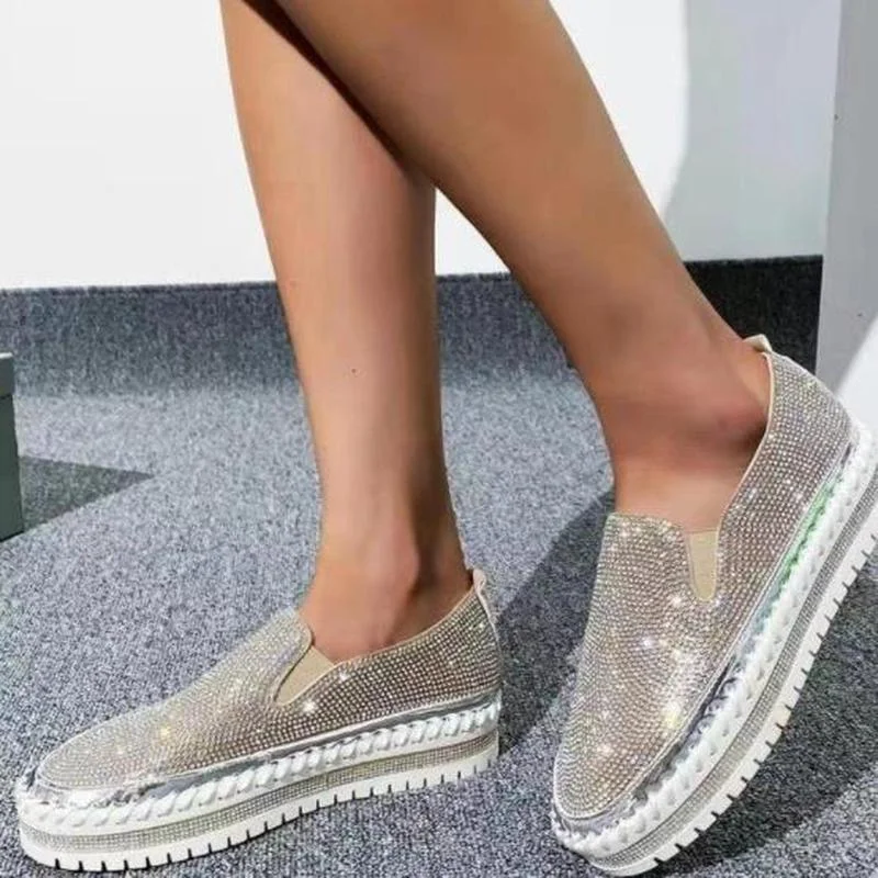 Luxury Women Flats Rhinestone Bling Sewing Platform Loafers Slip on Sewing Shallow Fashion Casual Shoes Ladies Footwear