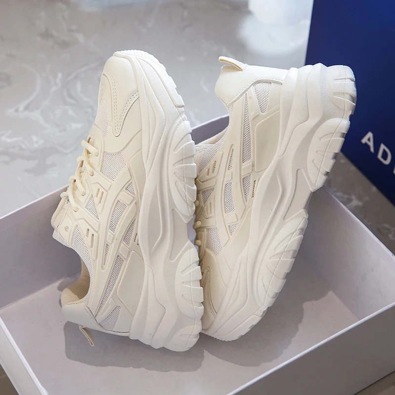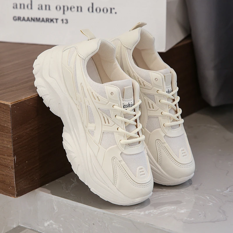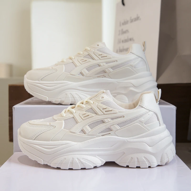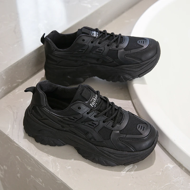 New Leather Chunky Sneakers Women's Sports Shoes Ladies Thick White Black Sneakers Women Tennis Vulcanized Shoes Basket