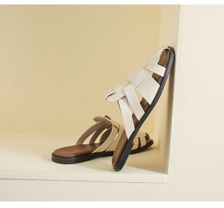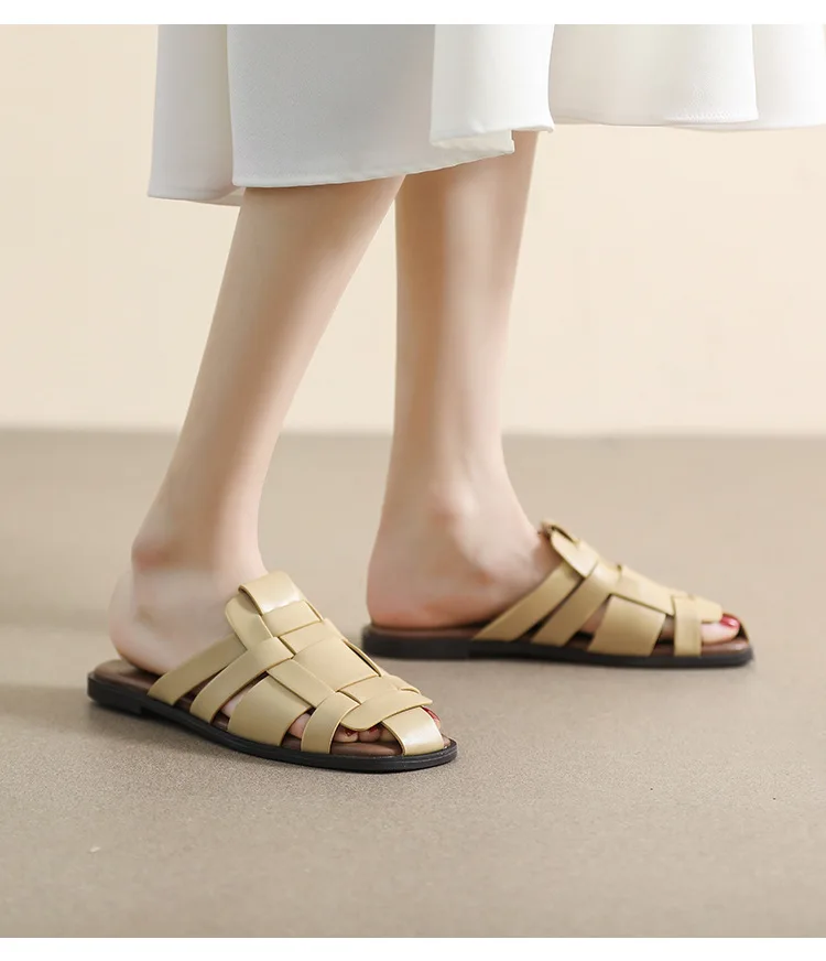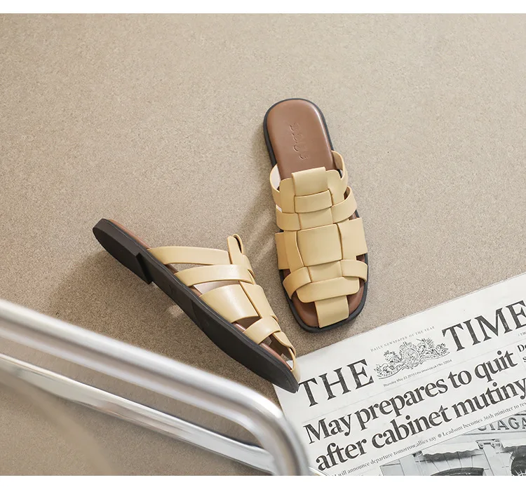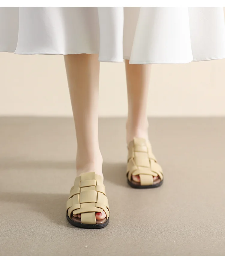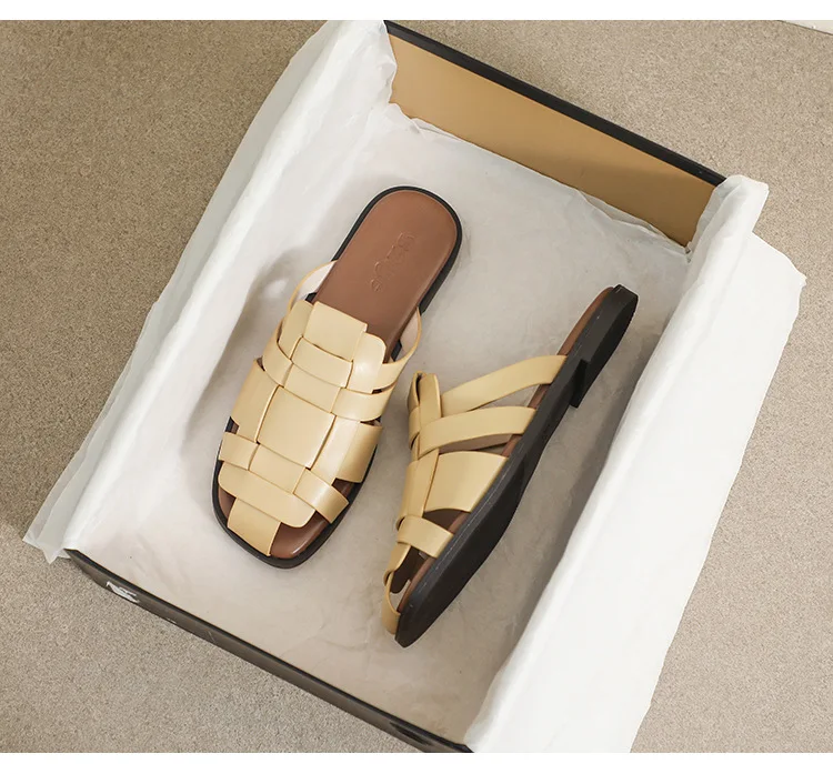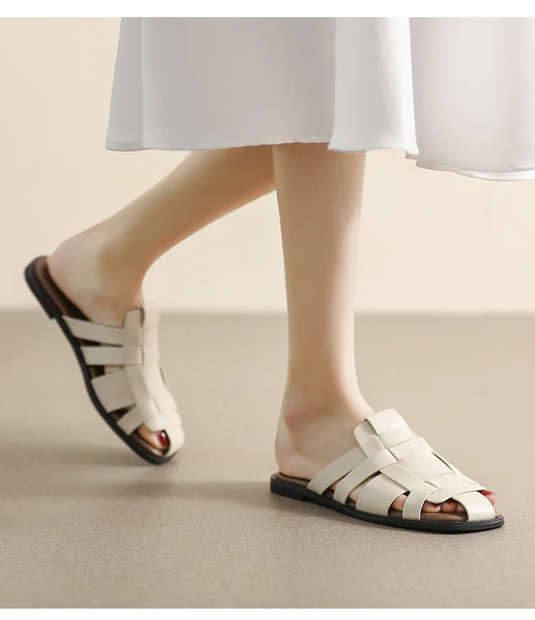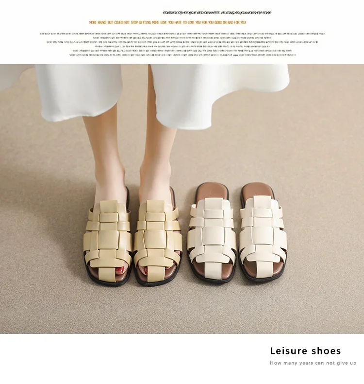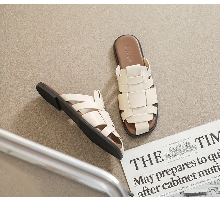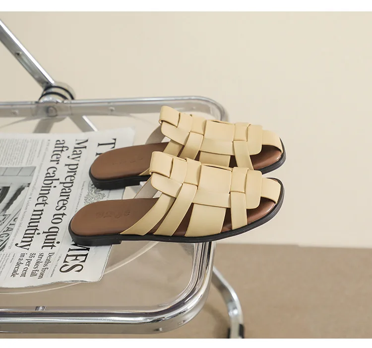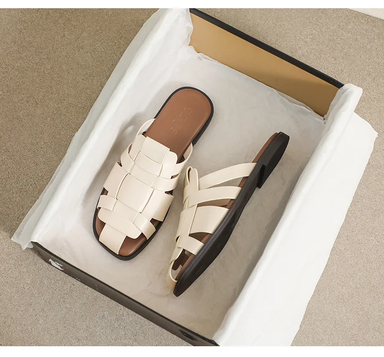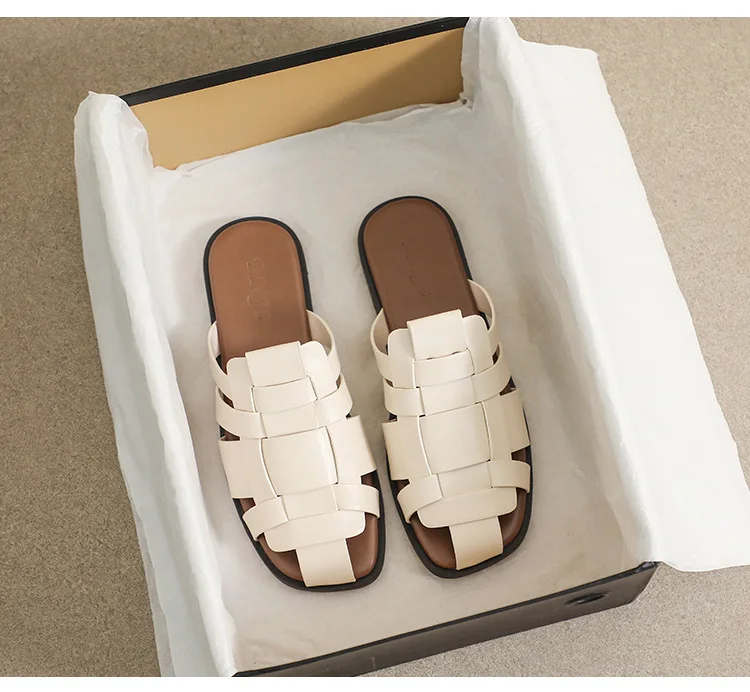 new Summer women's outdoor slippers Flat bottomed Baotou Muller Weaving design White shoes Fashion brand Free Delivery