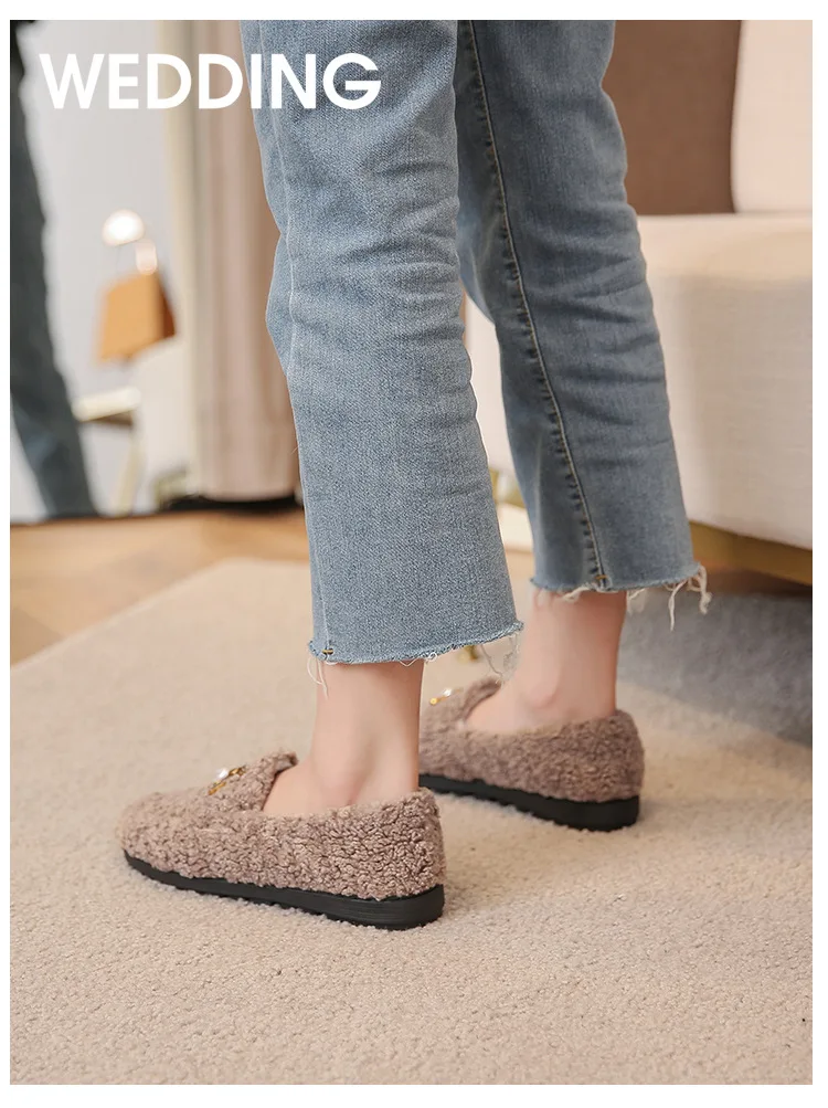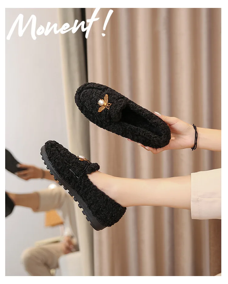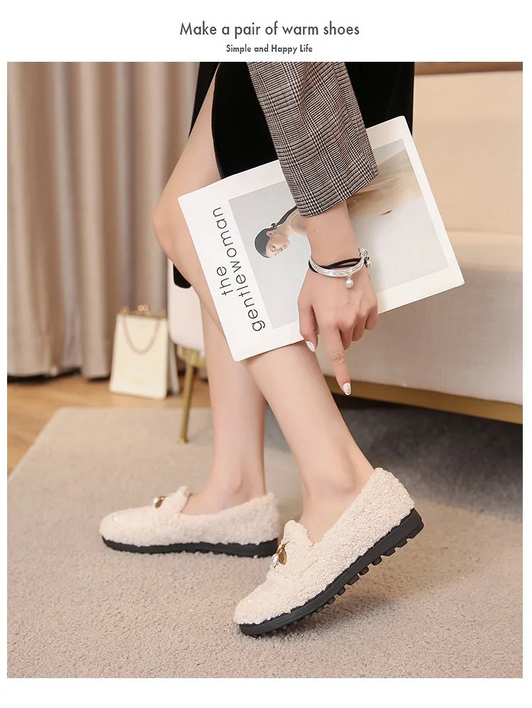 New Women's Winter Plush Shoes Wear non slip warm flat bottomed snow boots Fashion belongs to decorative design Large 41-43