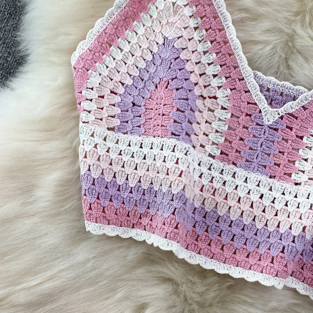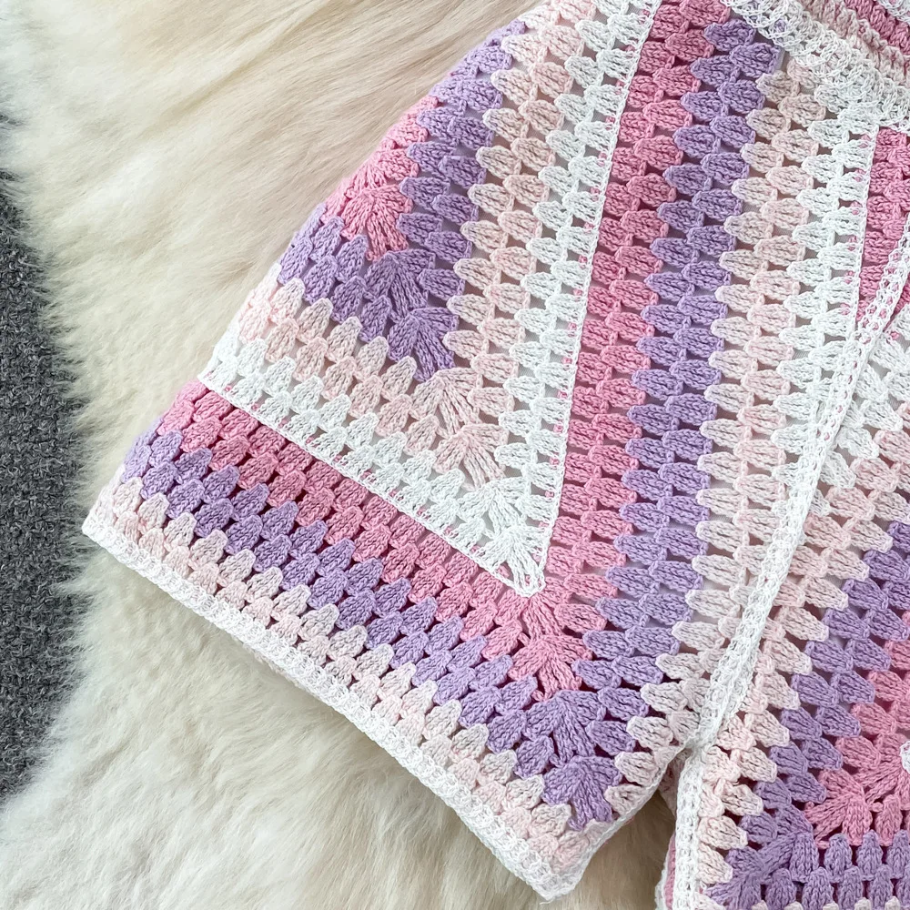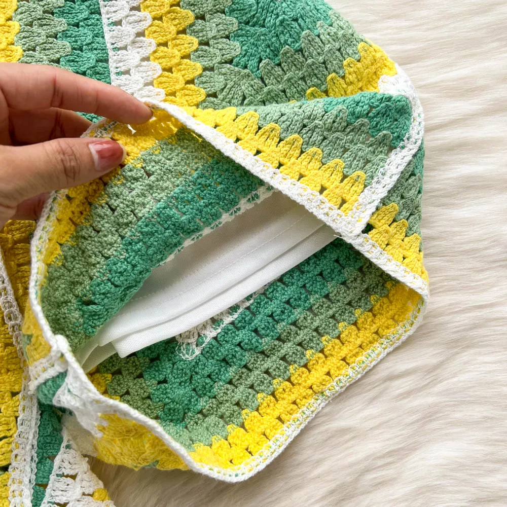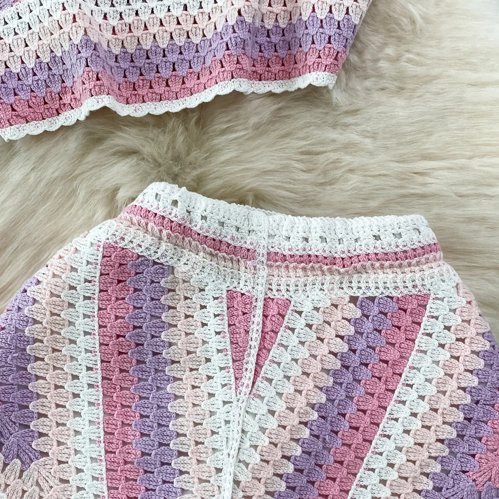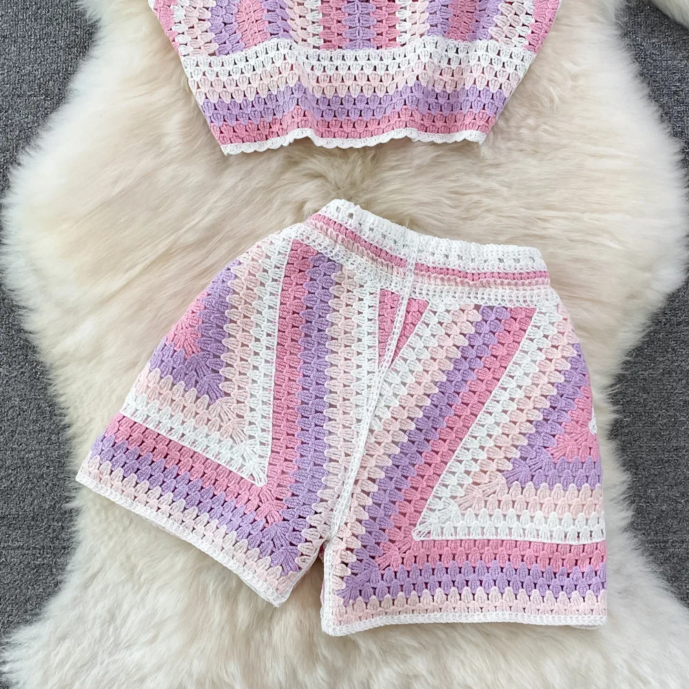 Knitted Crochet Two Piece Set Women Sexy V-Neck Cropped Tank Top and High Waist Shorts Matching Summer Beach Outfits