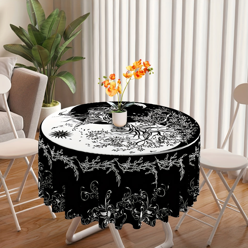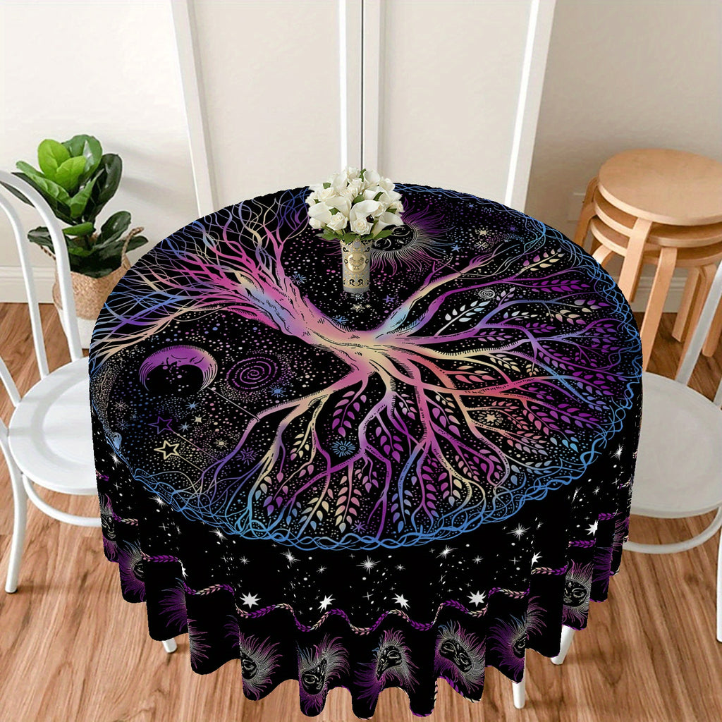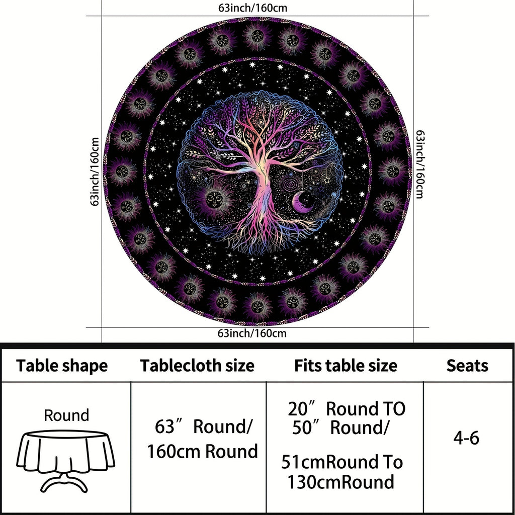 1pc 63 Inch Boho Chic Round Tablecloth - Stain Resistant, Absorbent, Wrinkle Free, Sun Moon Star Tree Pattern - Circle Table Cover for Home Kitchen Dining Party Patio Indoor and Outdoor Use, Easy Care, Room Decor, Scene Decor