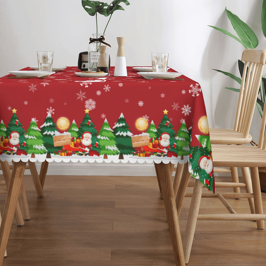 1pc Red Bell Snowflake Polyester Tablecloth - Merry Christmas Table Cover, Atmospheric Holiday Desktop Decoration Fabric, Home Decor, Gift Idea for Festive Season