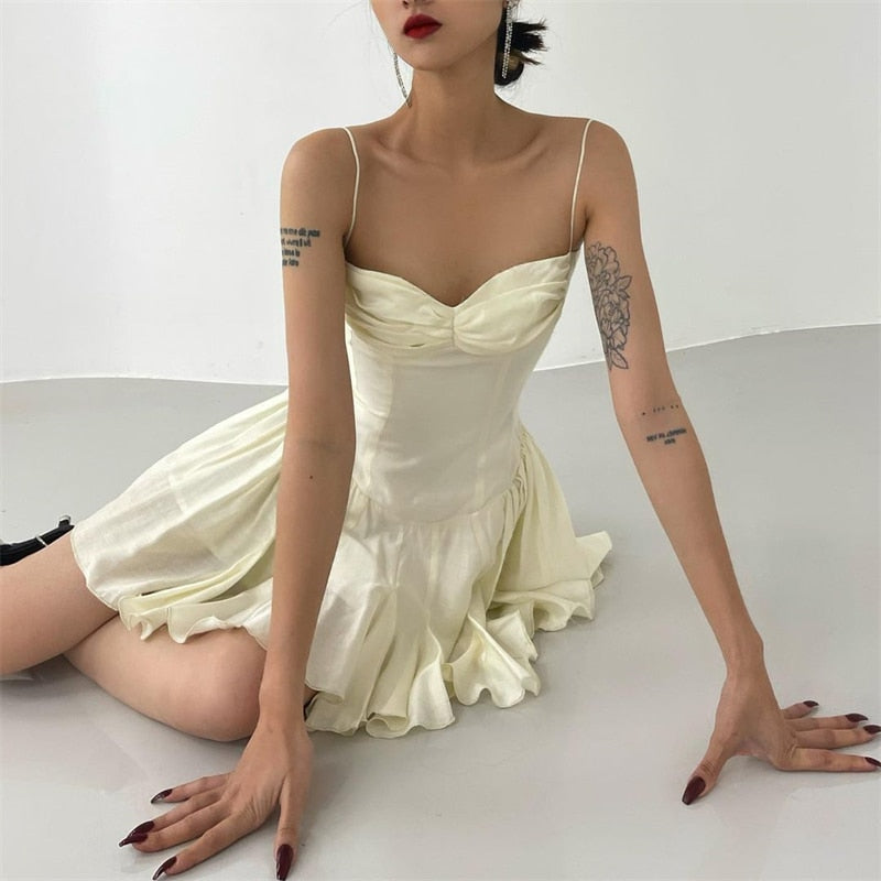 Hulianfu 2023 Spring Summer New Fashion Sexy Party Slim Women Pleated Elastic High Waist Chic Strap Short Mini Dress Female