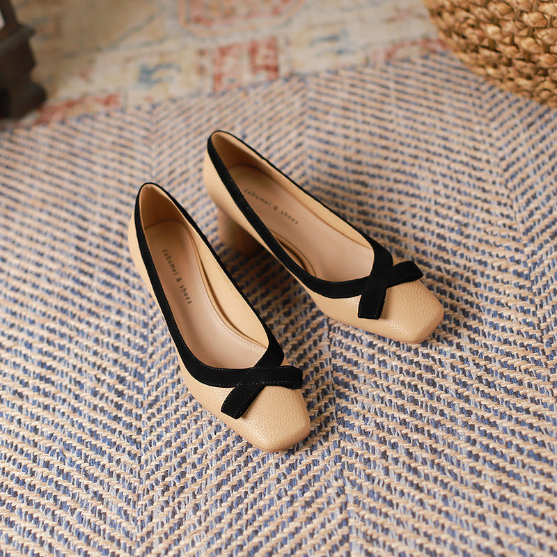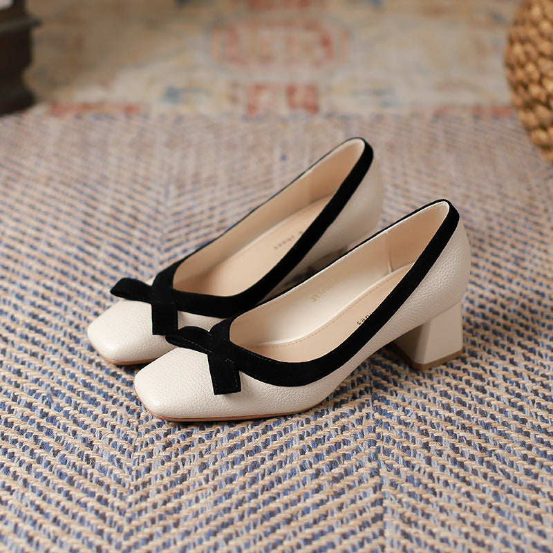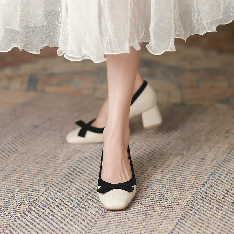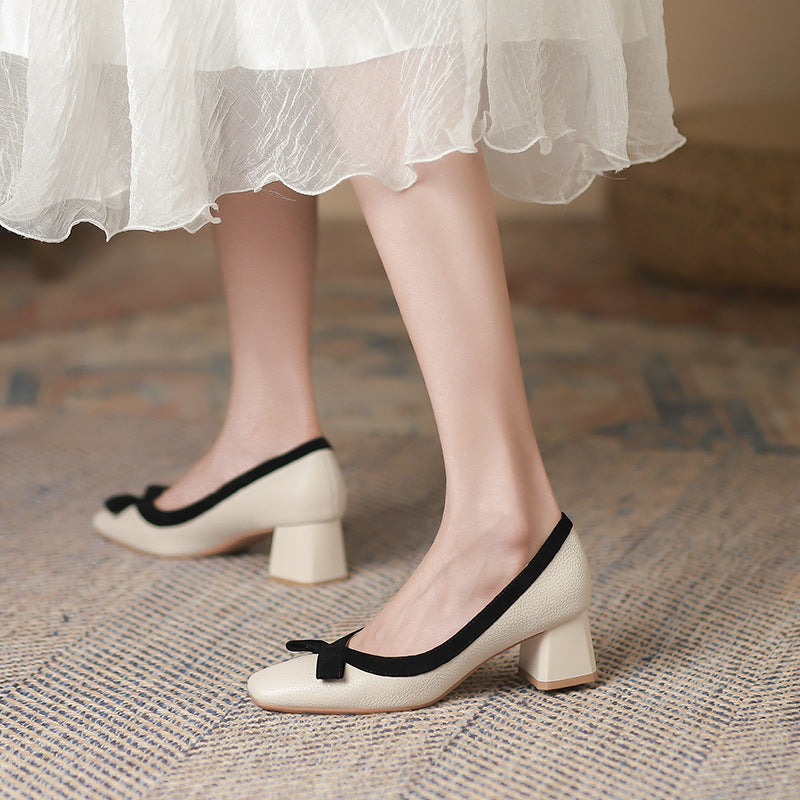 2025 5288-6 retro temperament single shoes women's spring 2025 new thick heels, light mouth bow high heels