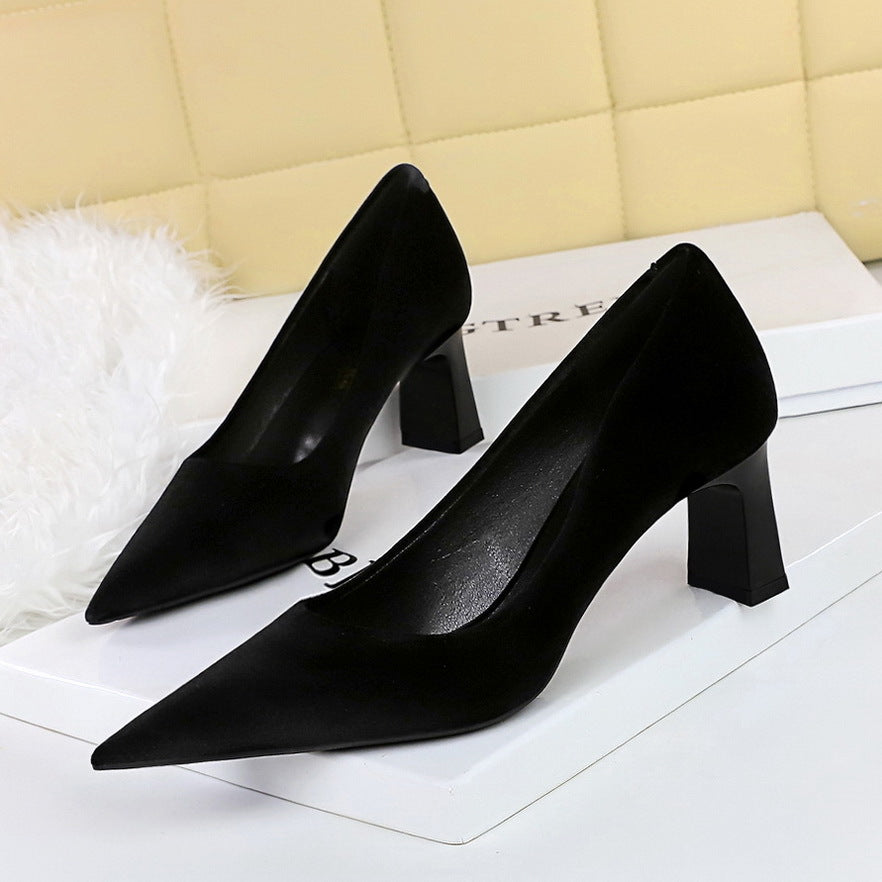 2025 6188-9 style fashionable simple banquet high heels thick heel women's shoes suede west velvet shallow mouth pointed single shoes