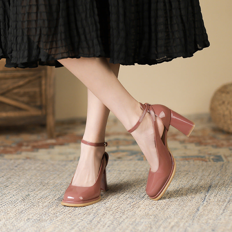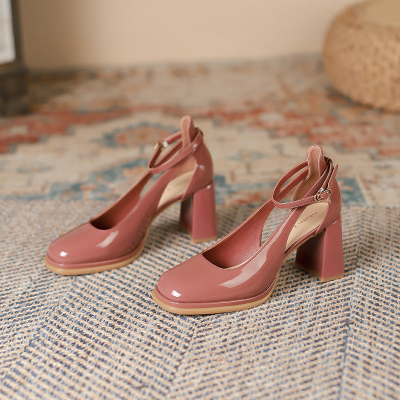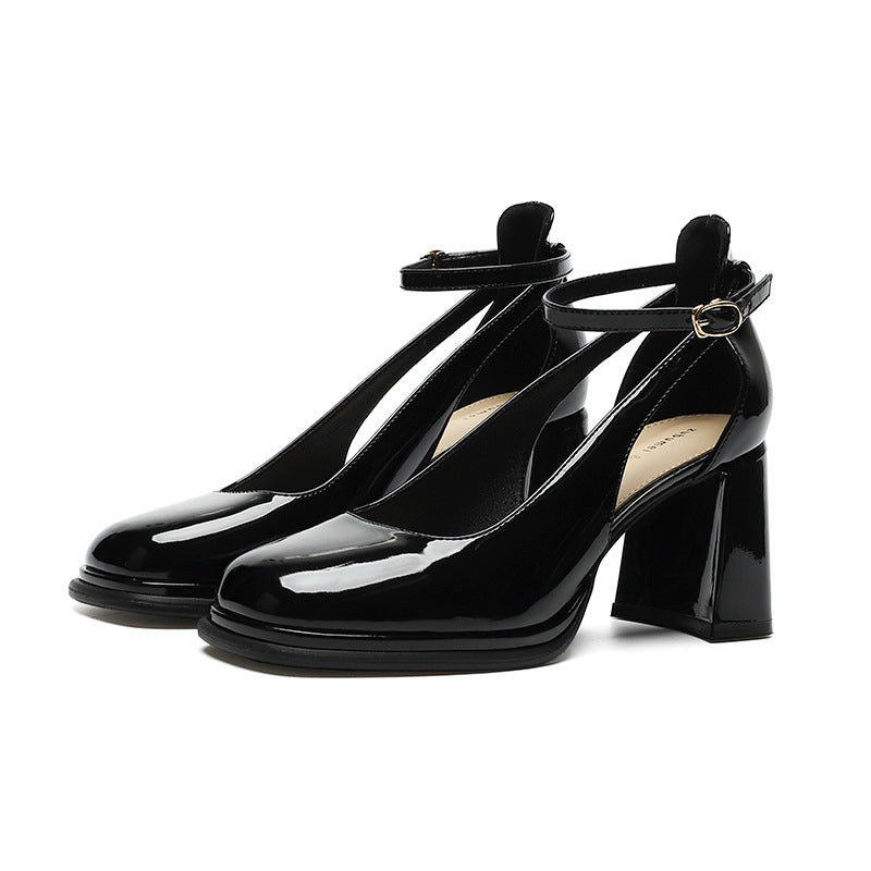 2025 700A Internet celebrity design sense niche square head high heels 2025 summer new thick heel Mary Jane bag head sandals