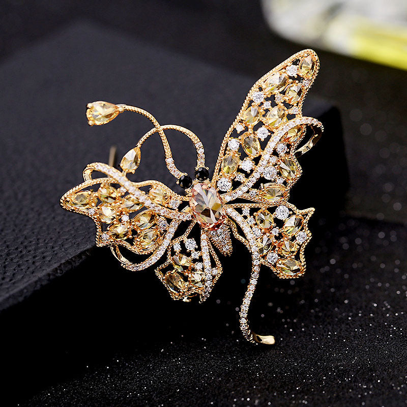2025 Brooch Fashion Elegance Temperament Zircon Corsage Women's Atmospheric Blazer Accessories Evening Dress Butterfly Pin
