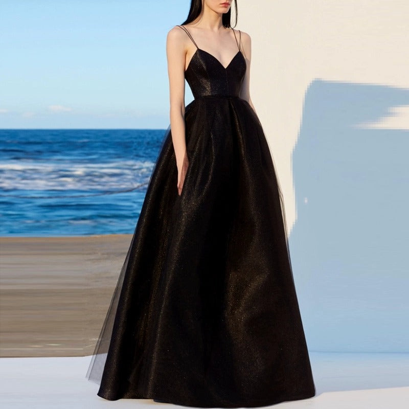 2025 Evening dress women new temperament socialite catwalk black annual meeting host dress birthday party dress
