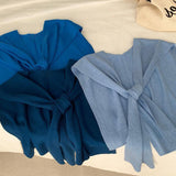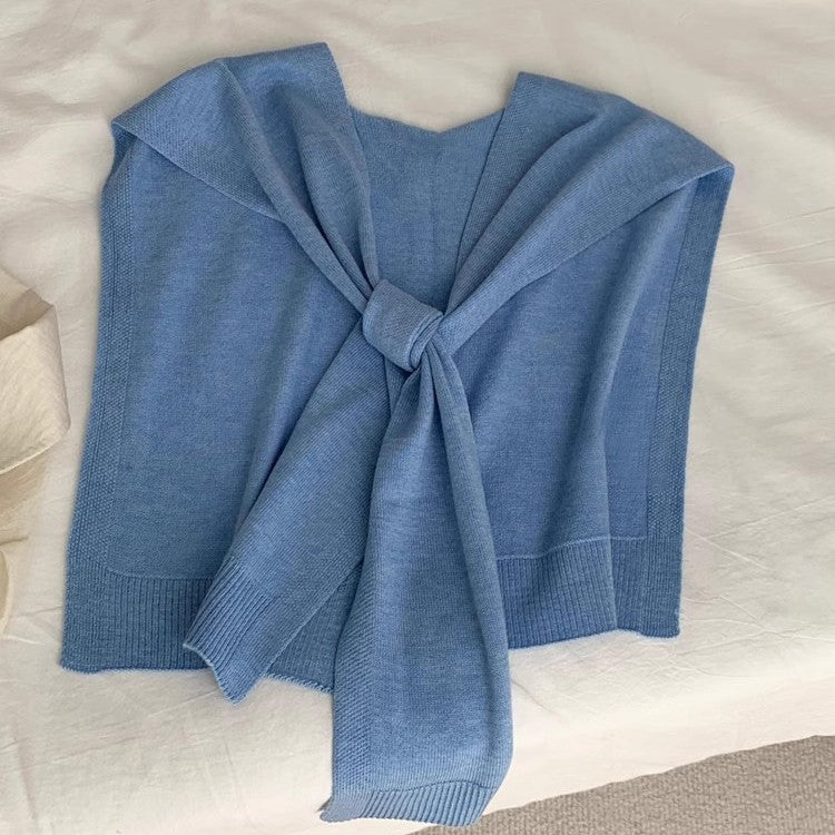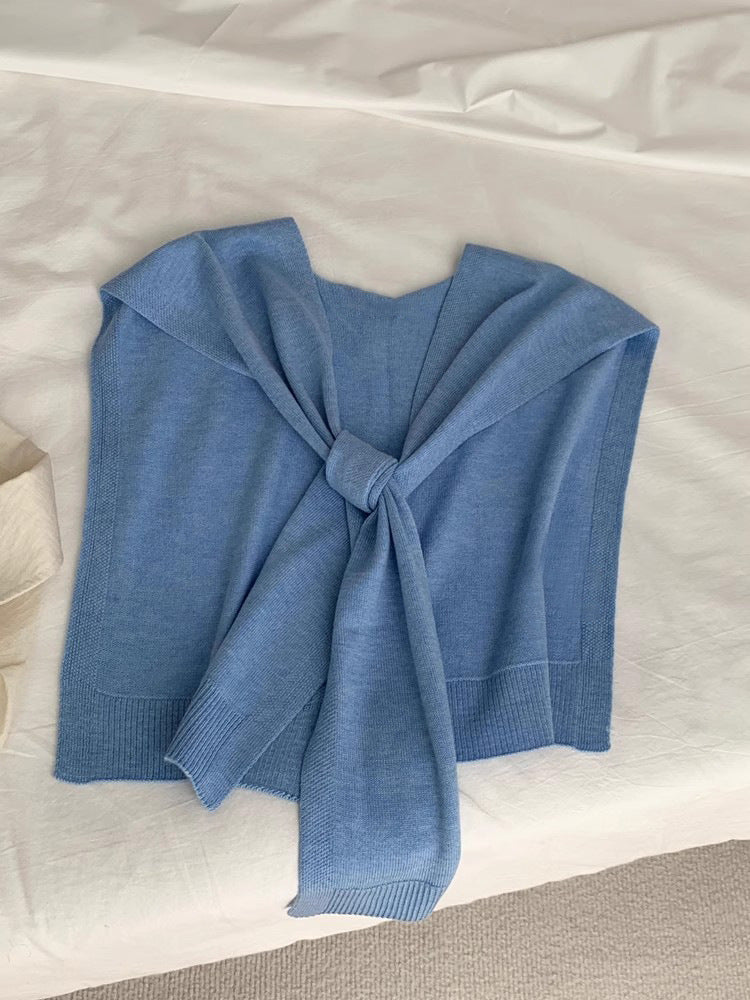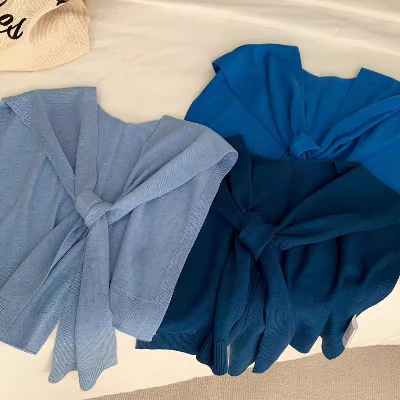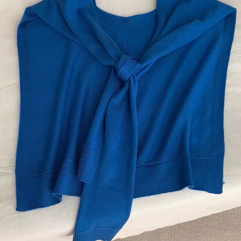 2025 Good-looking blue spring and autumn new ins style versatile Popular style knitted blue shawl air conditioner neck vest woman