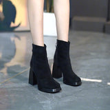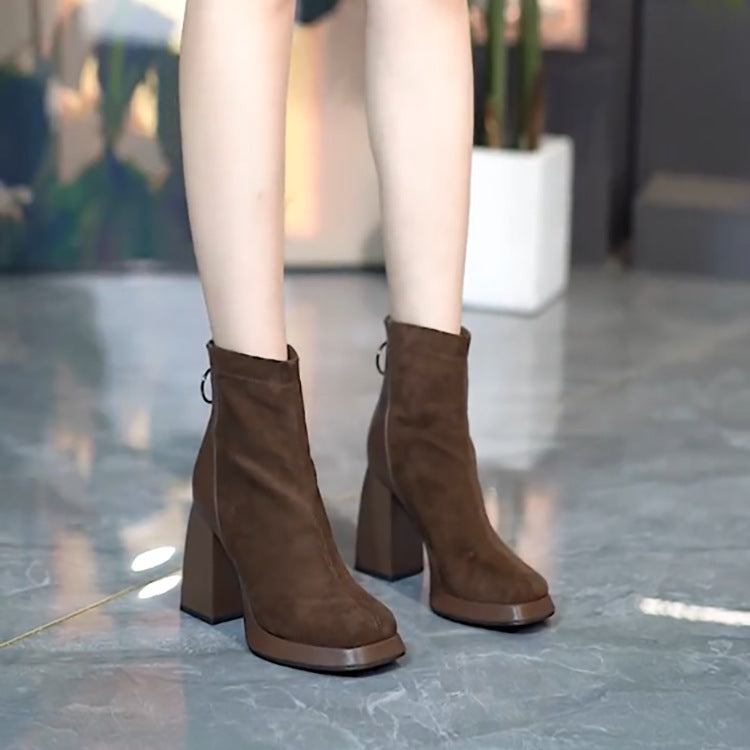 2025 High-heeled short boots women's autumn new square head thick-soled fashion women's boots waterproof rear zipper versatile thick-heeled Martin boots