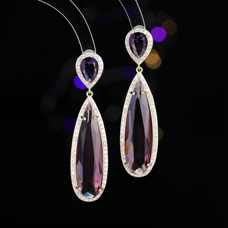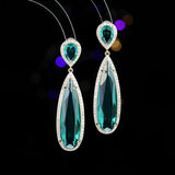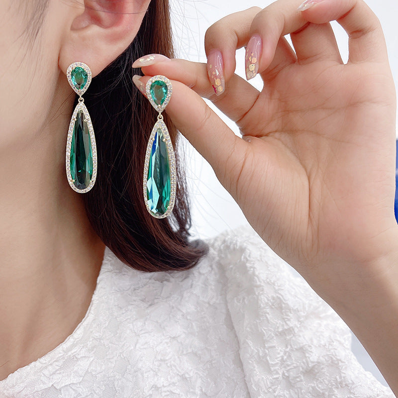 2025 Luxury atmospheric heavy industry earrings wholesale elegant temperament banquet dress with translucent long water drop-shaped zircon earrings