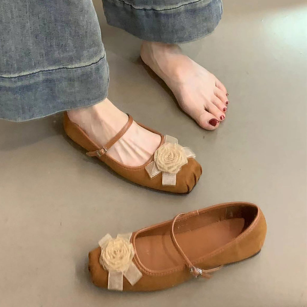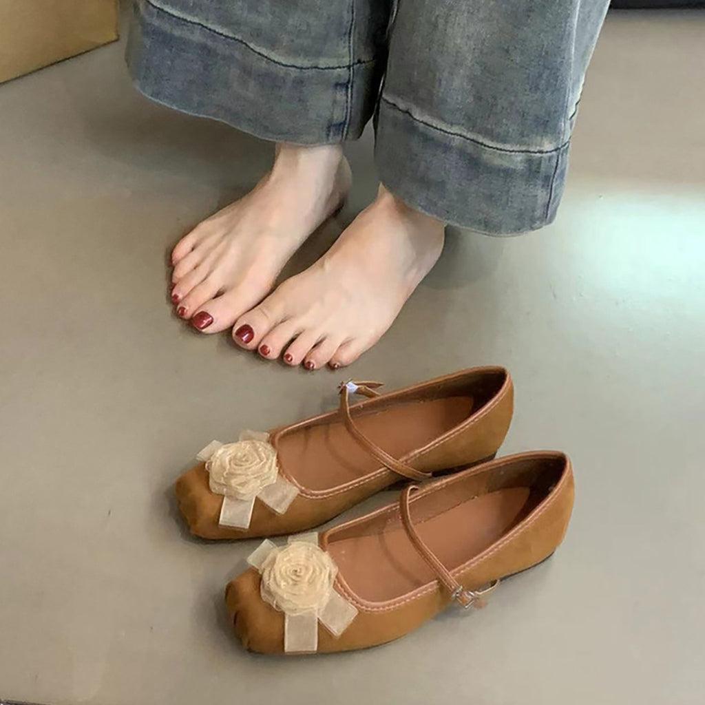 2025 New Chinese flower gentle wind shallow mouth single shoes women's head one-word buckle flat Mary Jane shoes
