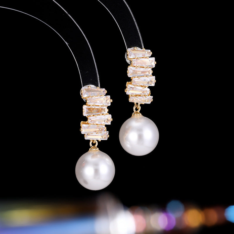 2025 New retro fashion earrings women's light luxury niche high-end super personalized design flash zircon pearl earrings