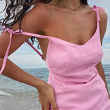 2025 Pink sexy cotton and linen V-neck suspender slim-fit hip-wrapped pencil dress popular spring and summer fashion short skirt women