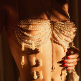 2025 Q4954Y New pearl beaded chest chain fringed neck vest top body chain Beaded bra chain