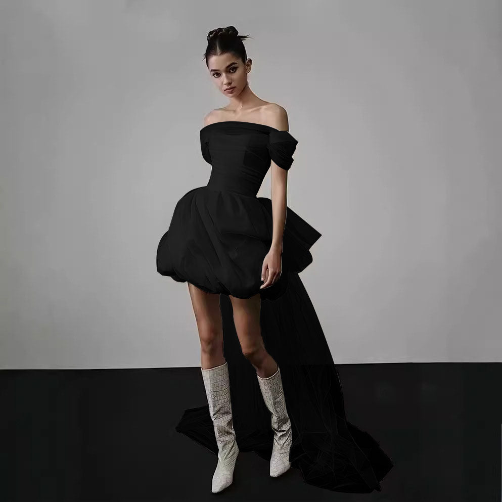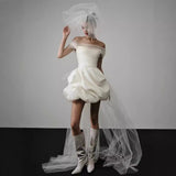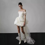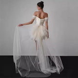 2025 Simple white dress skirt light wedding dress female bride travel photography go out yarn short one-word shoulder light luxury niche