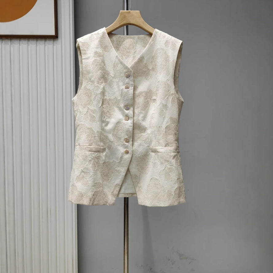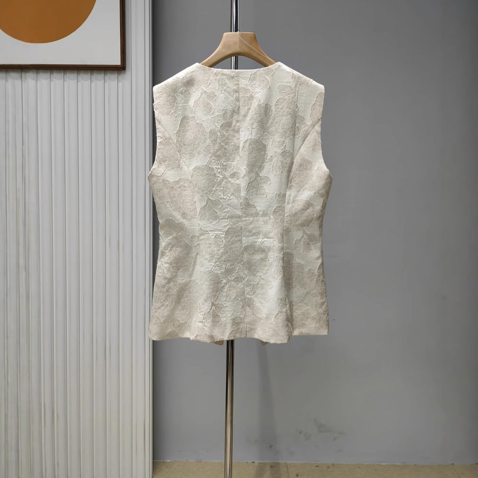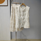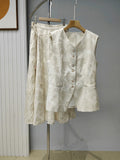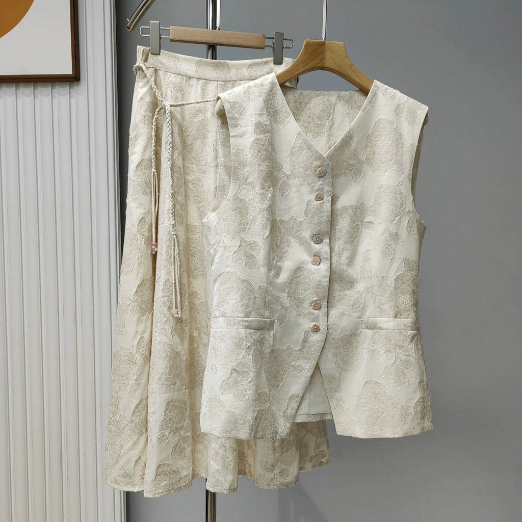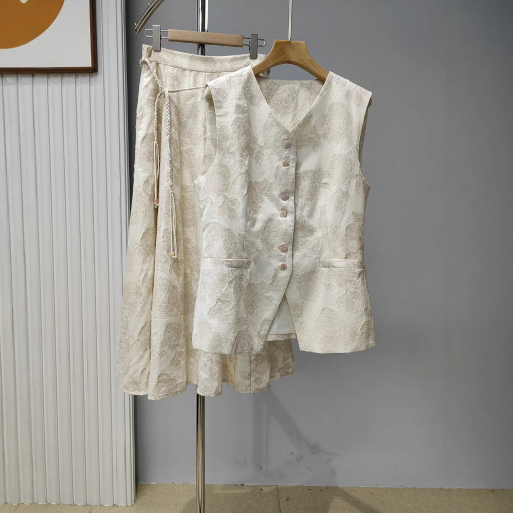 2025 spring and summer new cotton and linen blended flower-cut suit, summer thin sleeveless suit vest + skirt