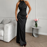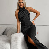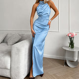 2025 temperament satin neck sleeveless split dress small dress popular fashion new New long dress