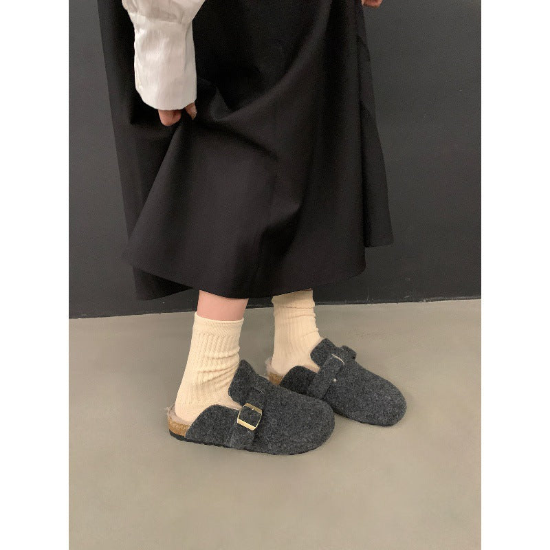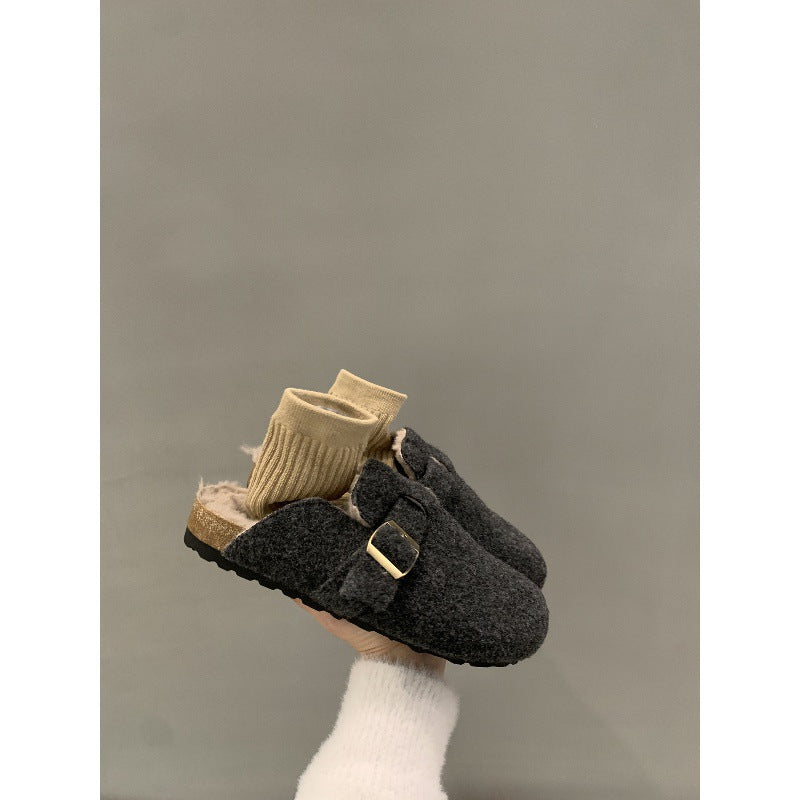 2025 thick-soled fluffy shoes, velvet warm cotton shoes, bag head half-towed, flat-soled Birkenstocks, women's winter shoes