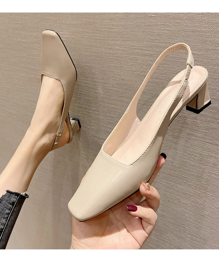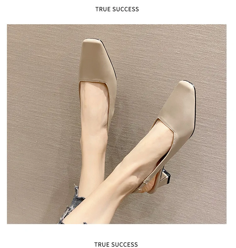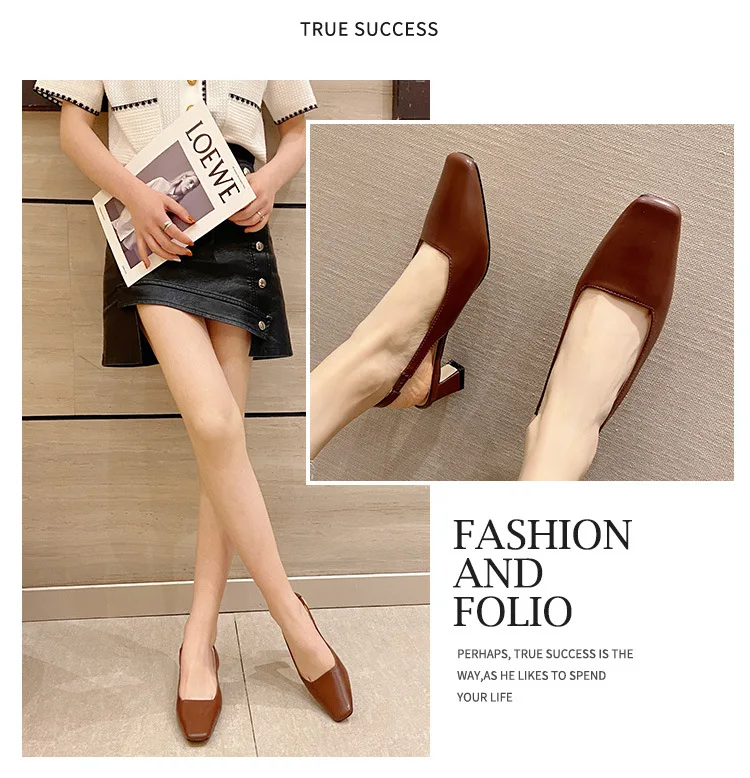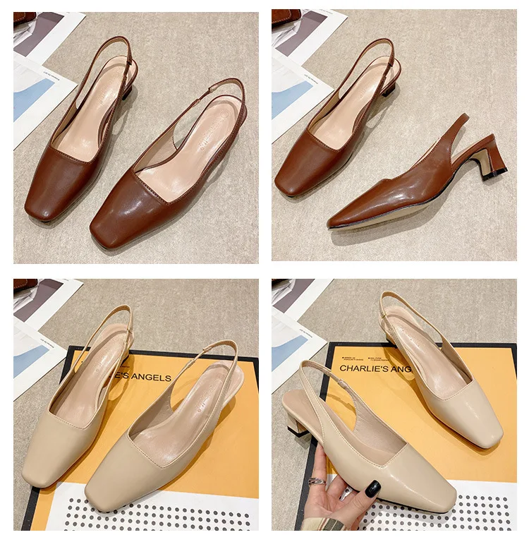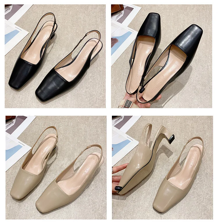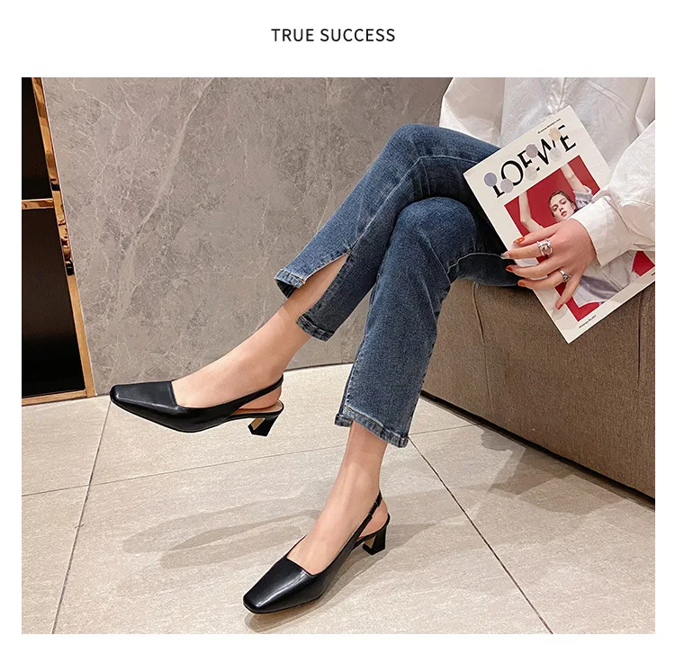 3cm New Fashion Sandals Square Toe Leather Block Heels Ankle Wrap Women Black Shoes 38 39