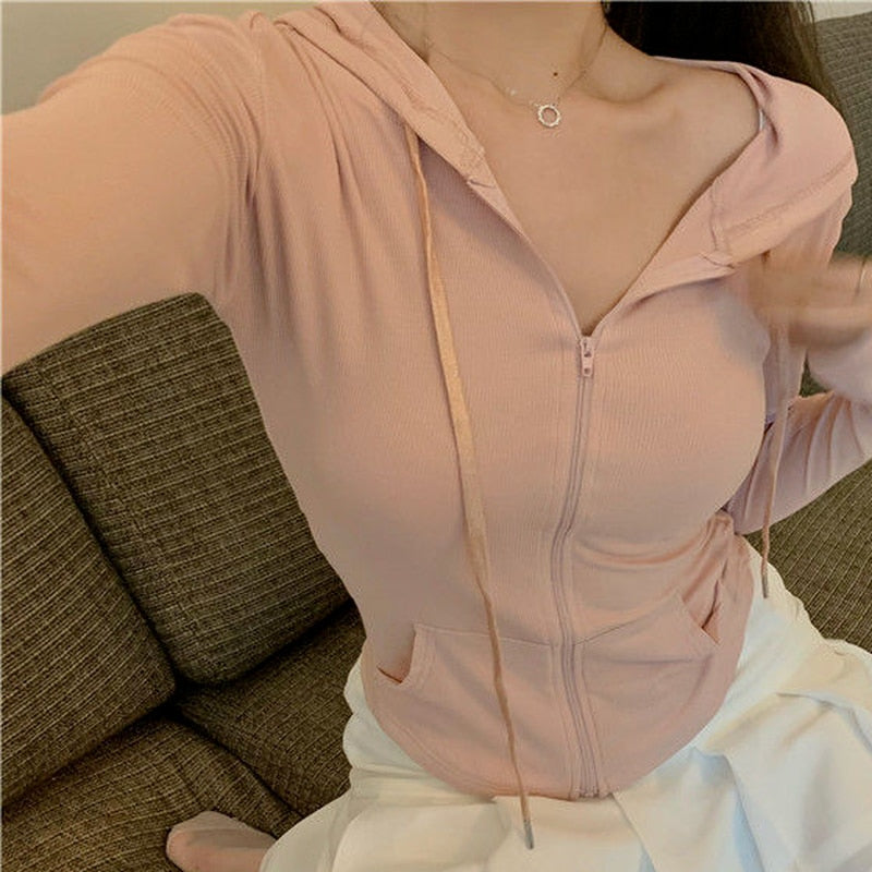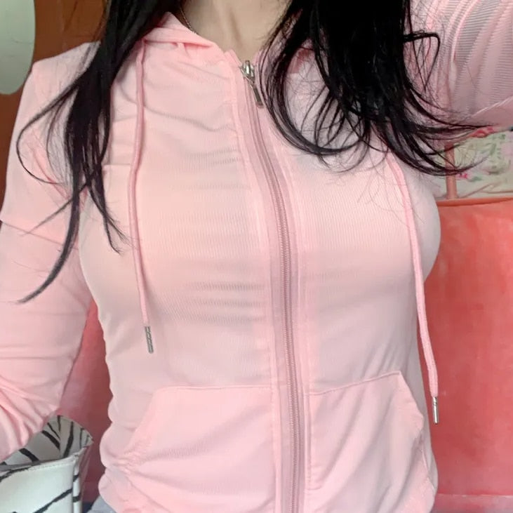 Basic Jackets Women Hooded Slim Female Long Sleeve Spring Summer Solid Casual Outerwear Workout Sun-proof College Clothes