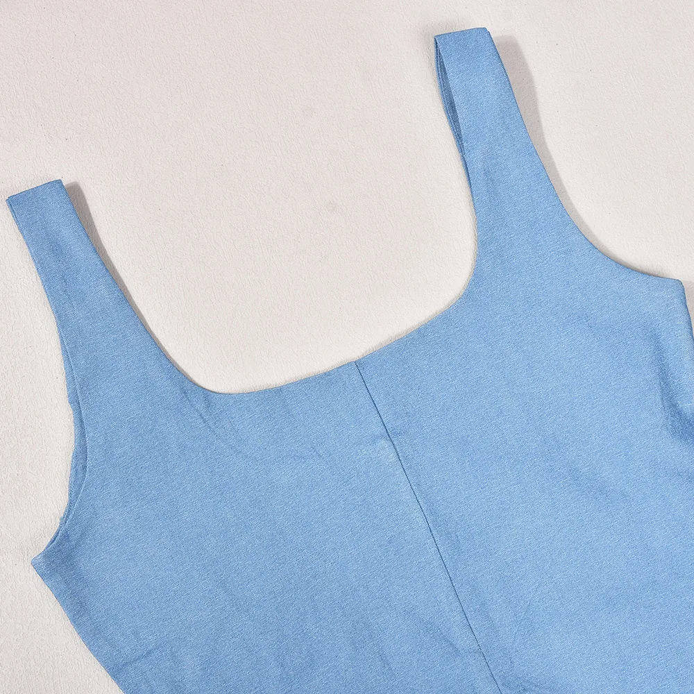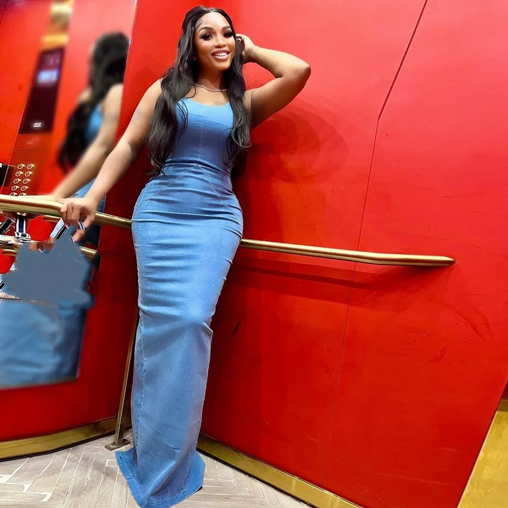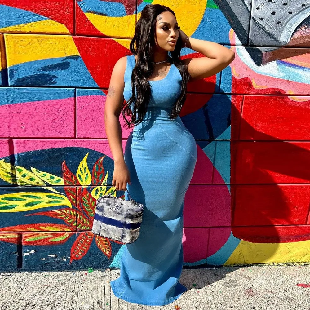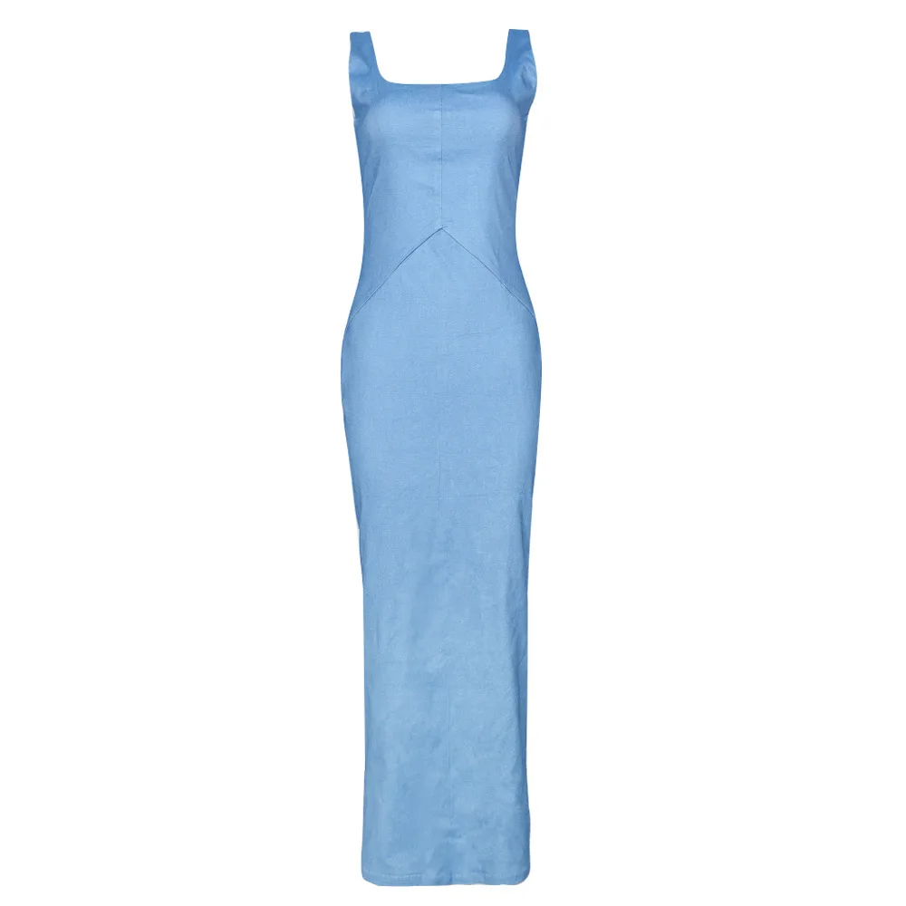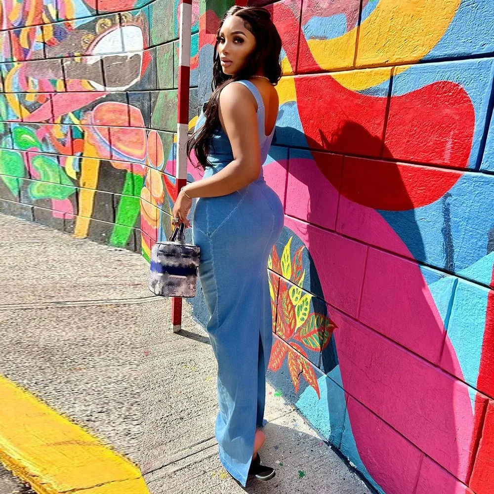 Blue Denim Maxi Dresses Women Spaghetti Strap Low Cut Backless Zipper Split Bodycon Dress Summer Harajuku Streetwear