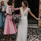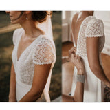 Boho Chiffon Backless Wedding Dress For Women Simple White Bohemian Short Cap Sleeves A Line Beach Bridal Gowns vestido de novia