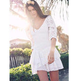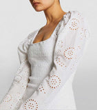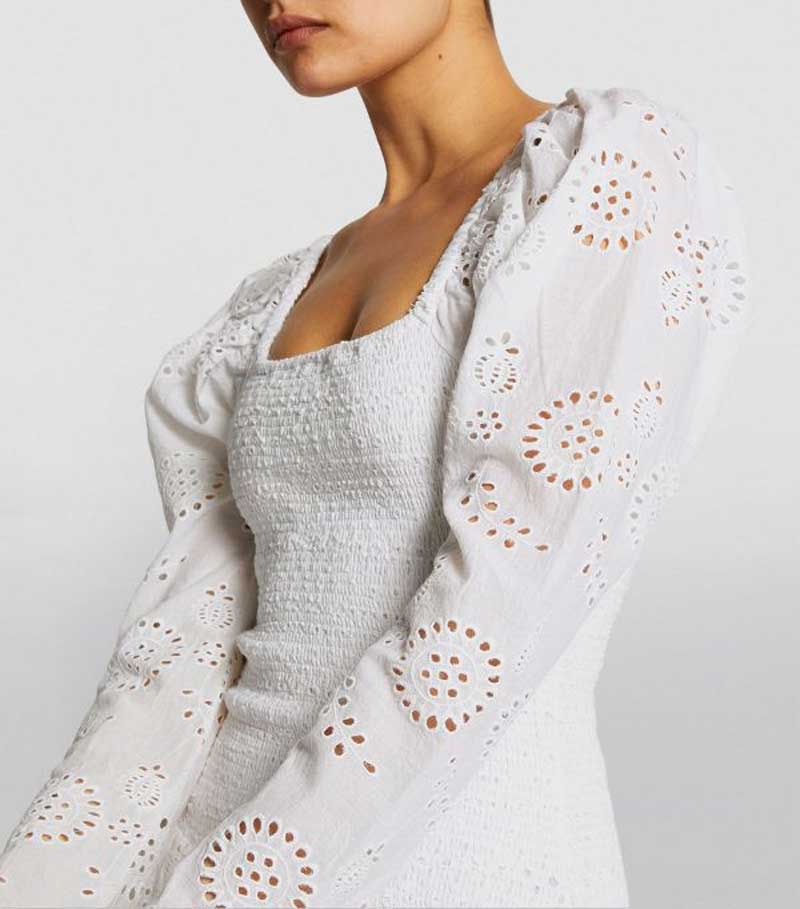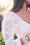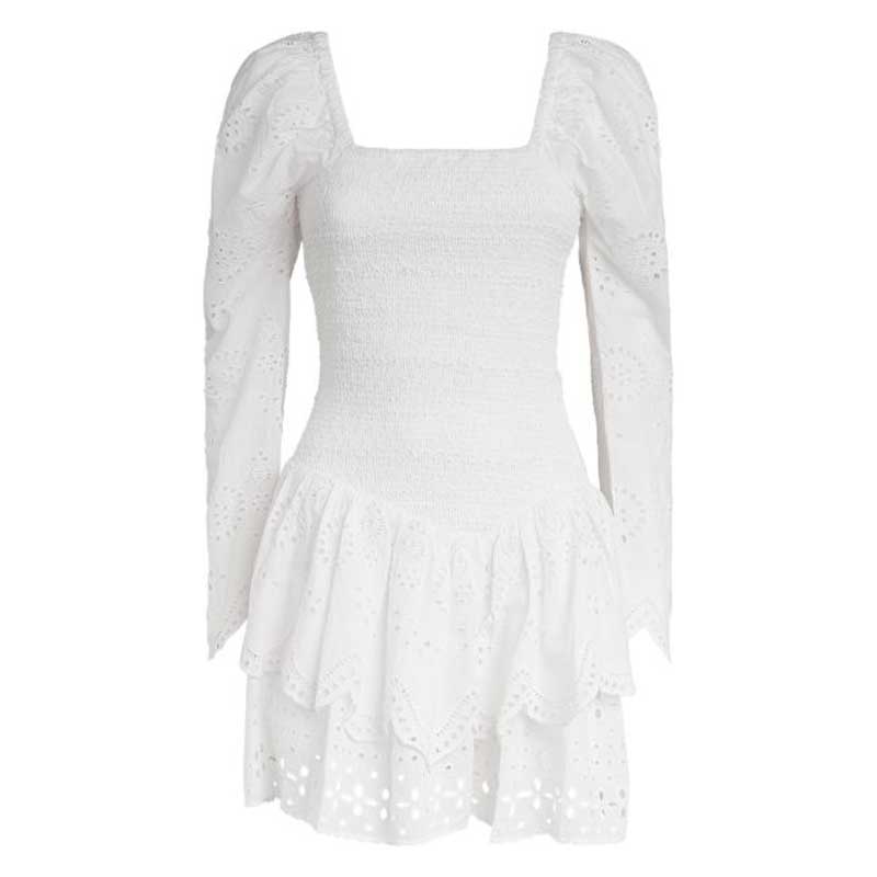 Boho Inspired long sleeve autumn white dress women cotton smocked bodice sexy party dress eyelet embroidery mini dress for women