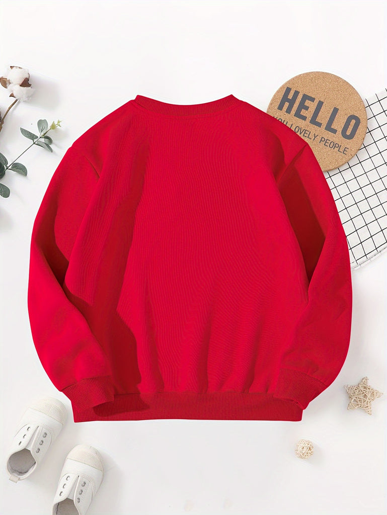 Boys' Cozy Fleece-Lined Christmas Sweatshirt with Santa & Friends Print - Casual Long Sleeve Pullover for Fall/Winter