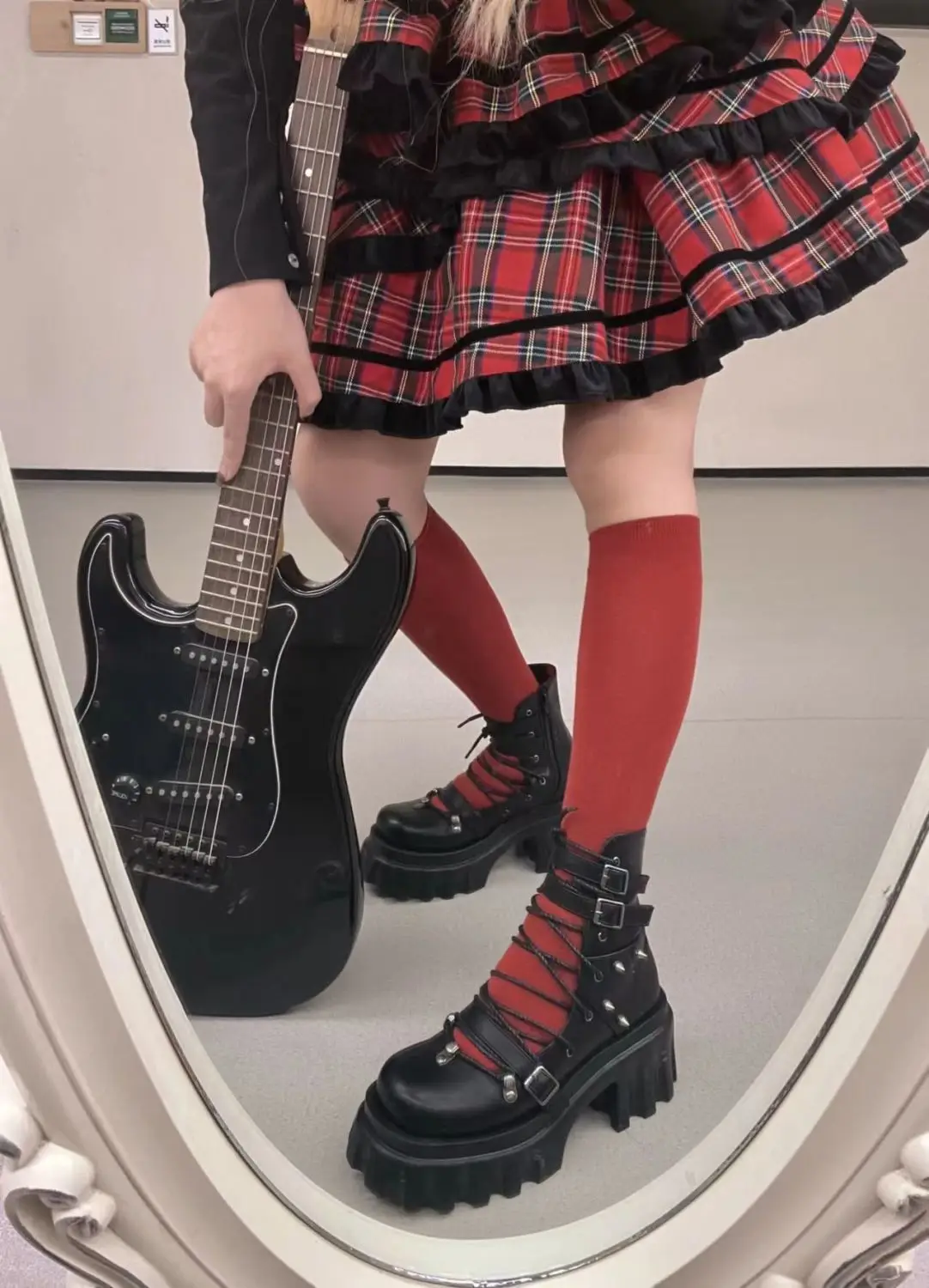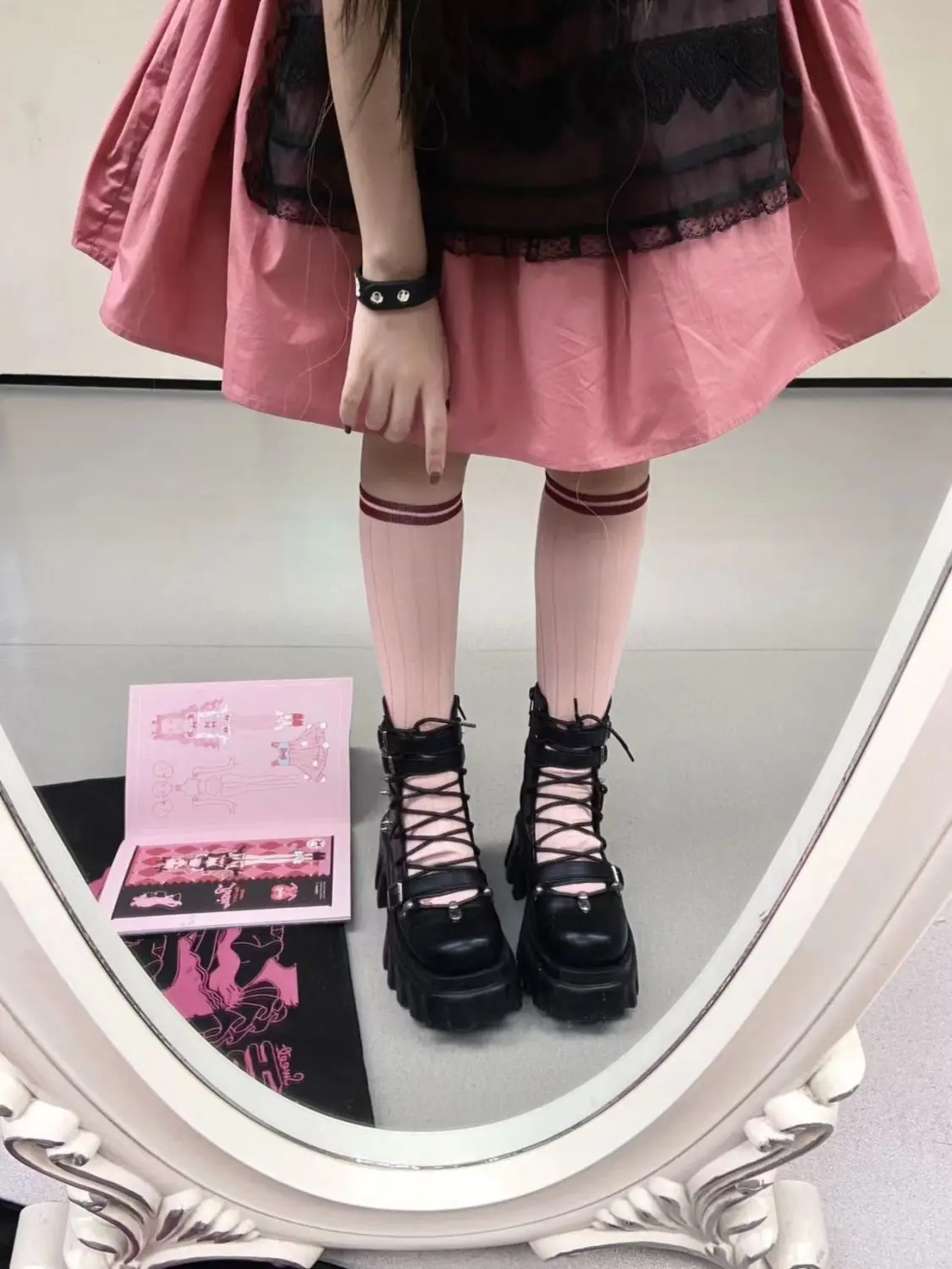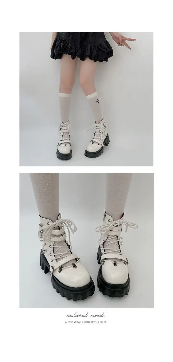 Dark Gothic Hollow Sandals Women Thick Sole Metal Buckle Punk Spice Single Shoes Chunky Heel Platform Cross Tied Y2K Shoes