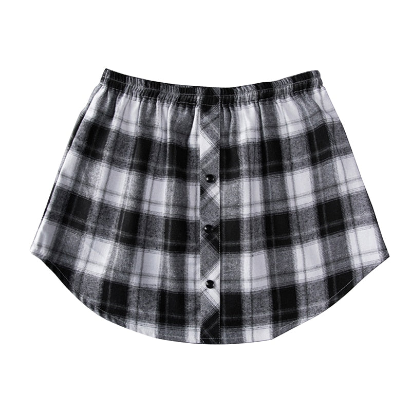 Hulianfu Detachable Underskirt Cotton Shirt Extender for Women Irregular False Skirt Tail Blouse Hem Plaid Mini Skirt Extender Hemline