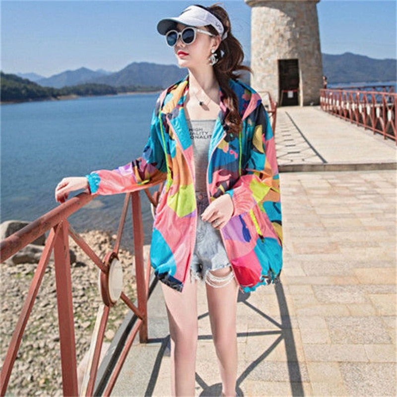 ?Female Summer New Camouflage Thin Sun Protection Clothing Women Short Anti-Ultraviolet Korean Sun Protection Clothing