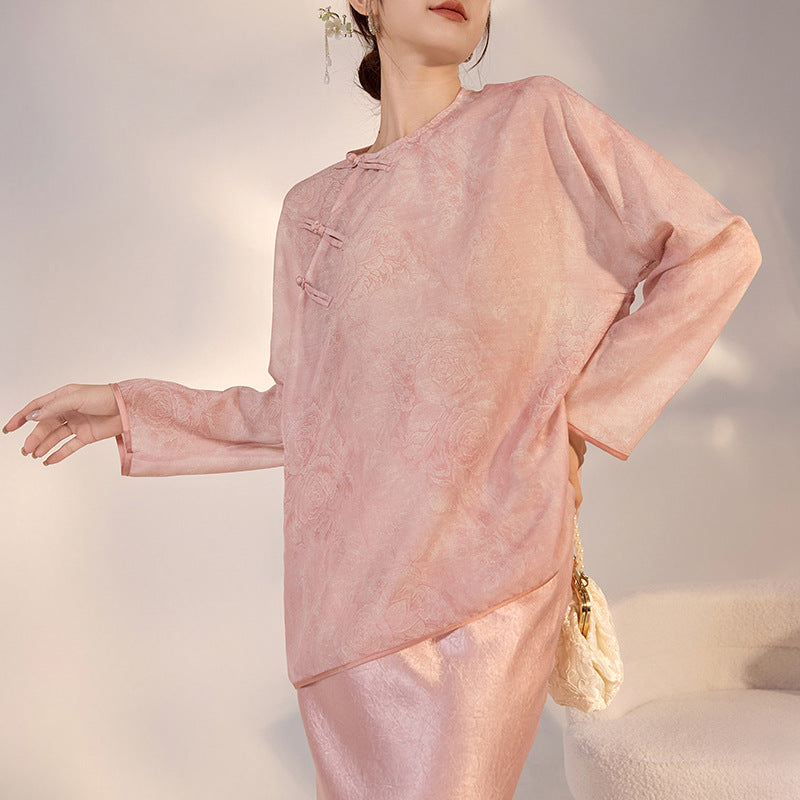 Guofeng new flower printing new Chinese thin shirt light luxury high temperament loose and thin top M3070