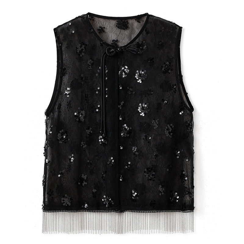 Guofeng summer new embroidered high-end design vest new Chinese light luxury fringed vest women's clothing N4027