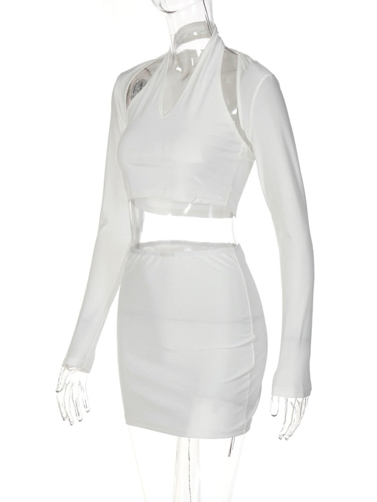 Halter Top And Mini Skirt Set Women Autumn Hooded 3 Piece Outfit Fashion Casual Holiday Outfits Sexy Club Party Co ord Set