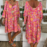 hulianfu Helisopus Summer Plus Size Women Boho Floral Print Dress Casual Loose Deep V Neck Holiday Beach Shirt Dress Vestido