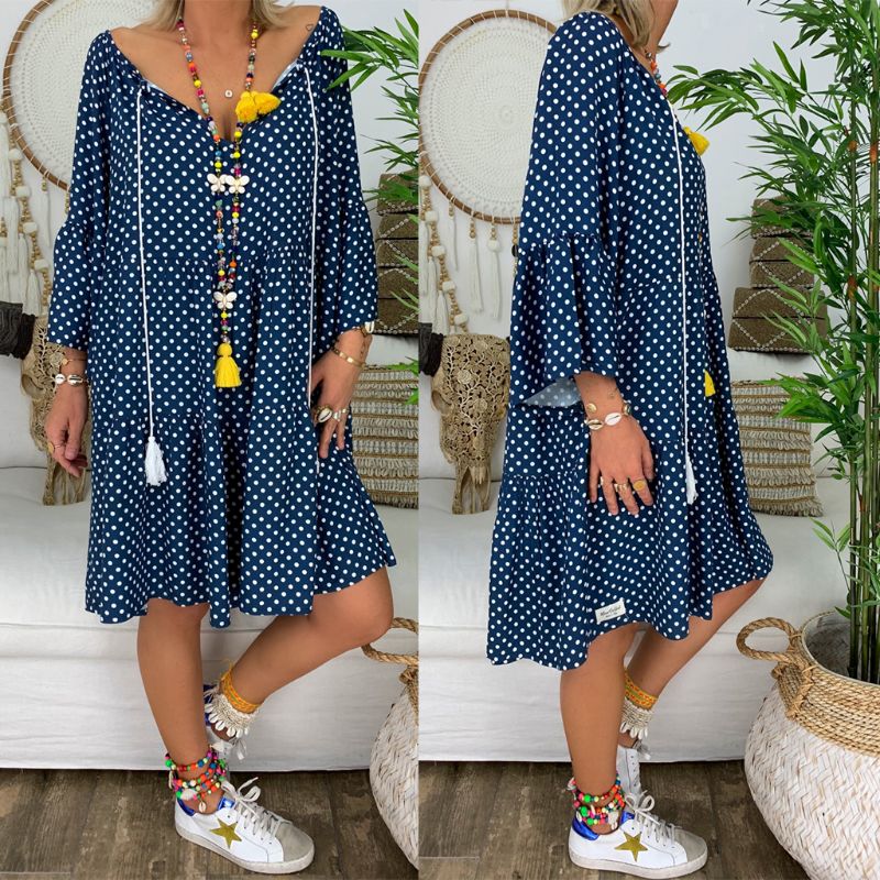 Type : Women Floral Print Shirt Dress V Neck Grand Size