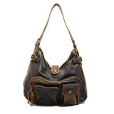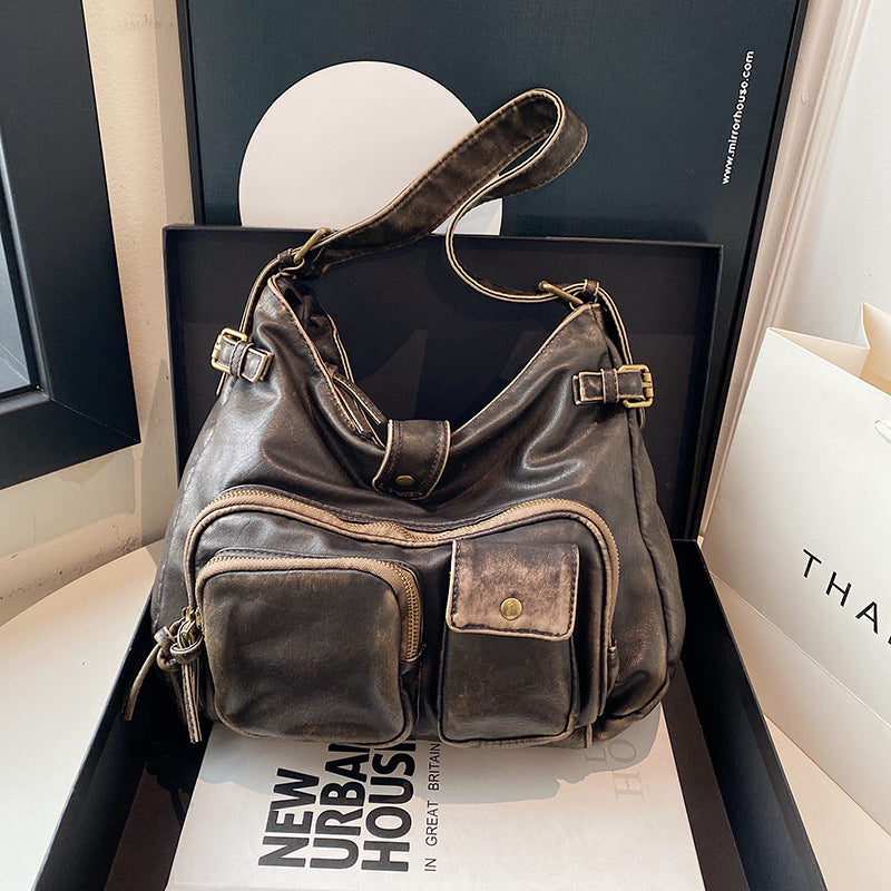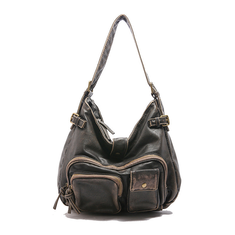 HULIANFU 2025 special for women's fashion washed leather whitened old locomotive bags multi-pocket retro trend shoulder bags
