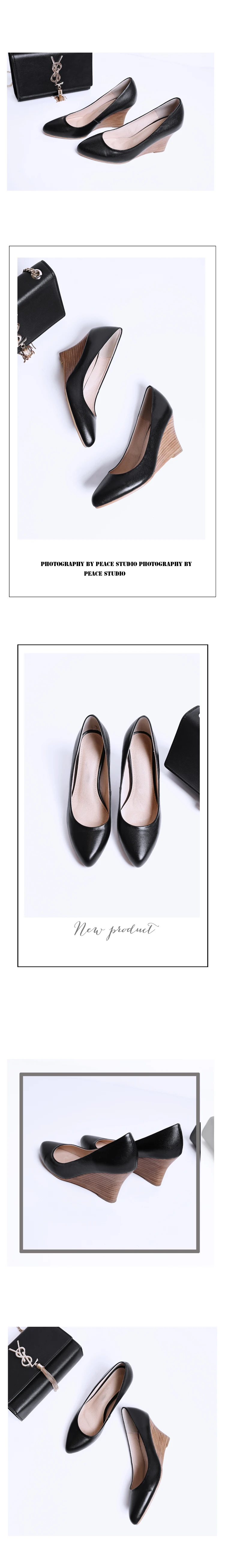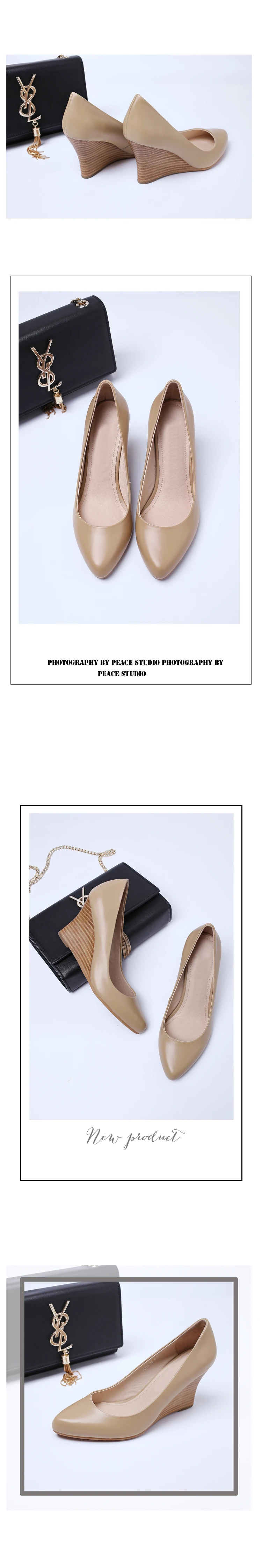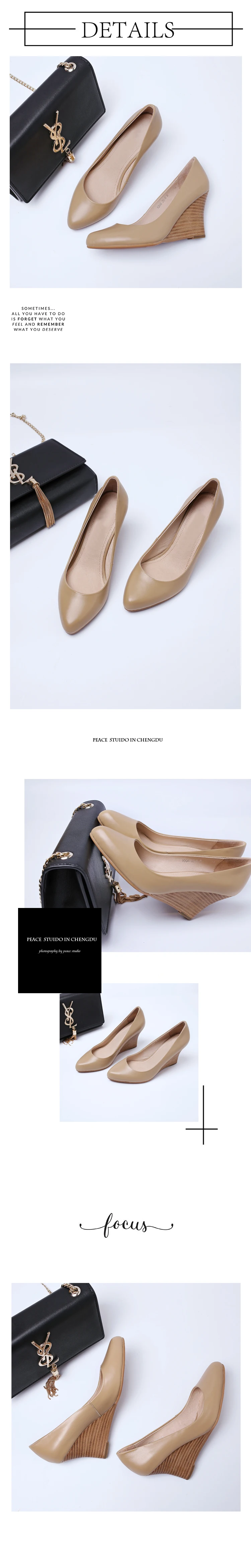 hulianfu new women's pumps Genuine Leather shoes 22-24.5 cm Cowhide upper high heels Spring and autumn Wedge heel all-match shoes