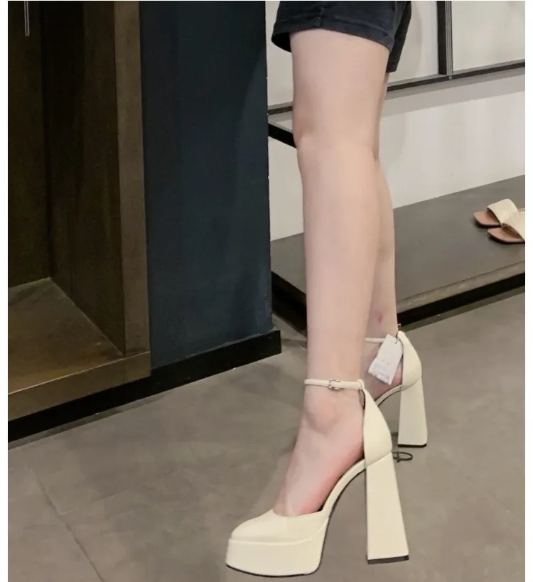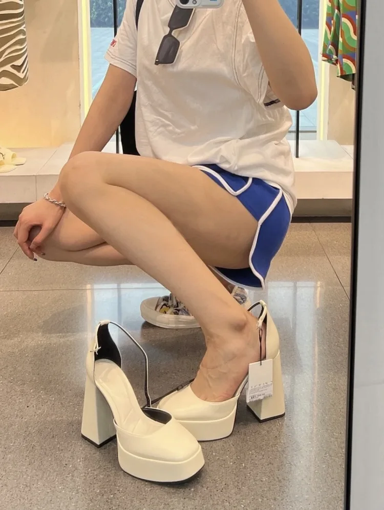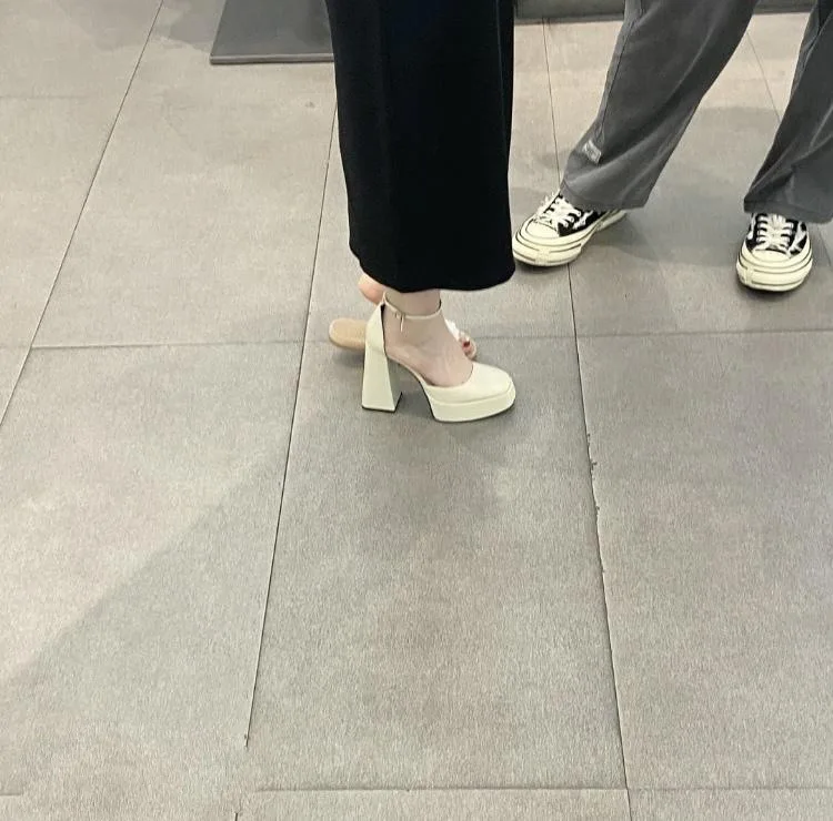 hulianfu White Heels Shoes for Women Summer Fashion Square Head Buckle Mary Jane Shoes Outdoor Party Chunky Sandals Zapatos De Tacon