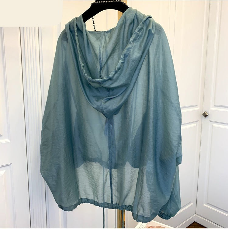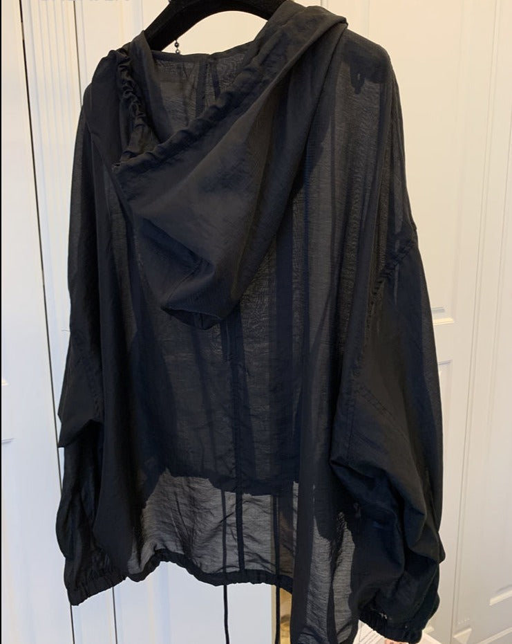 Hulianfu Jackets Women Hooded Summer Sun-proof Zipper Coats Thin Loose See Through Outerwear Breathable Outwear Lightweight Clothes Black